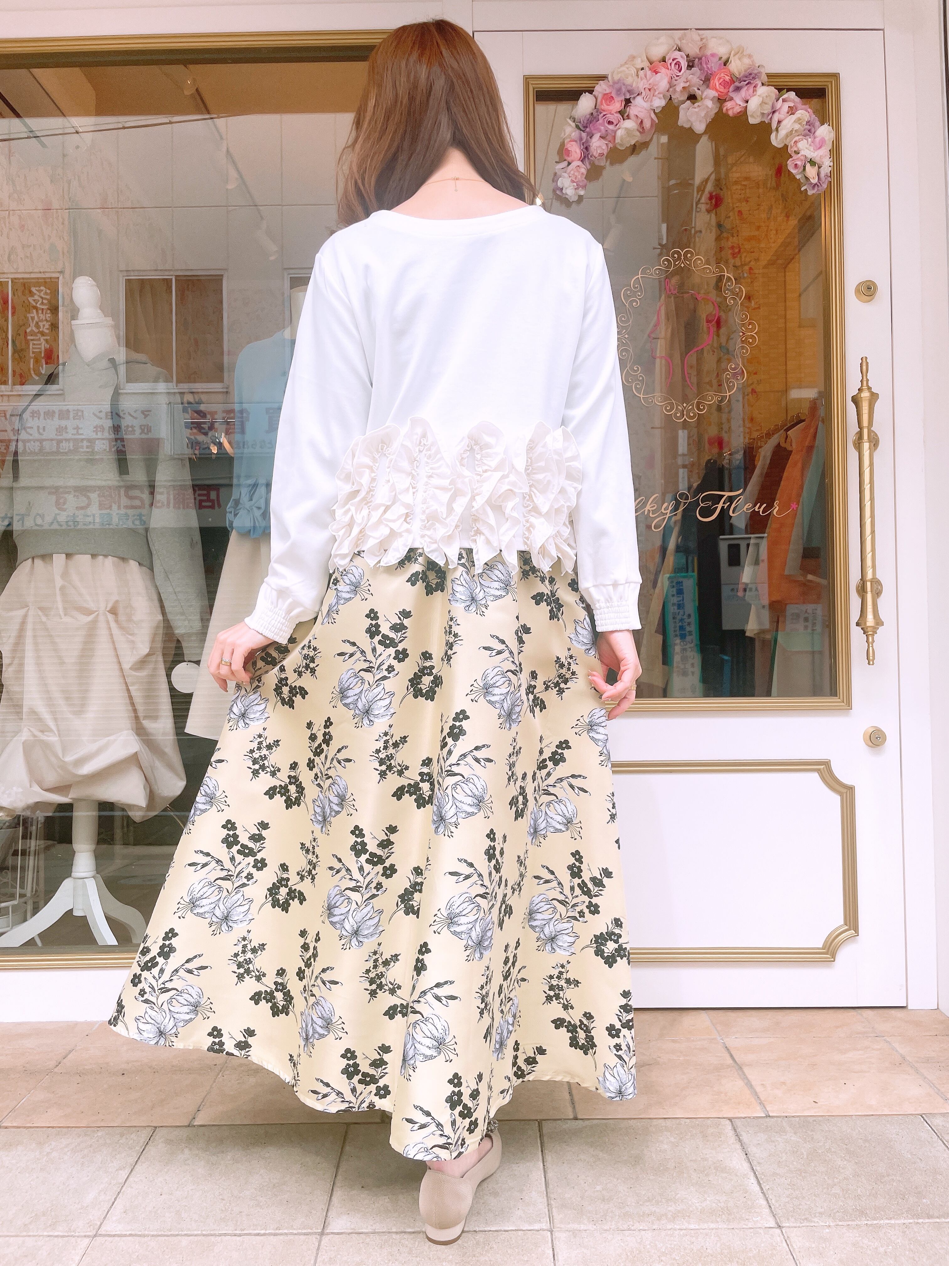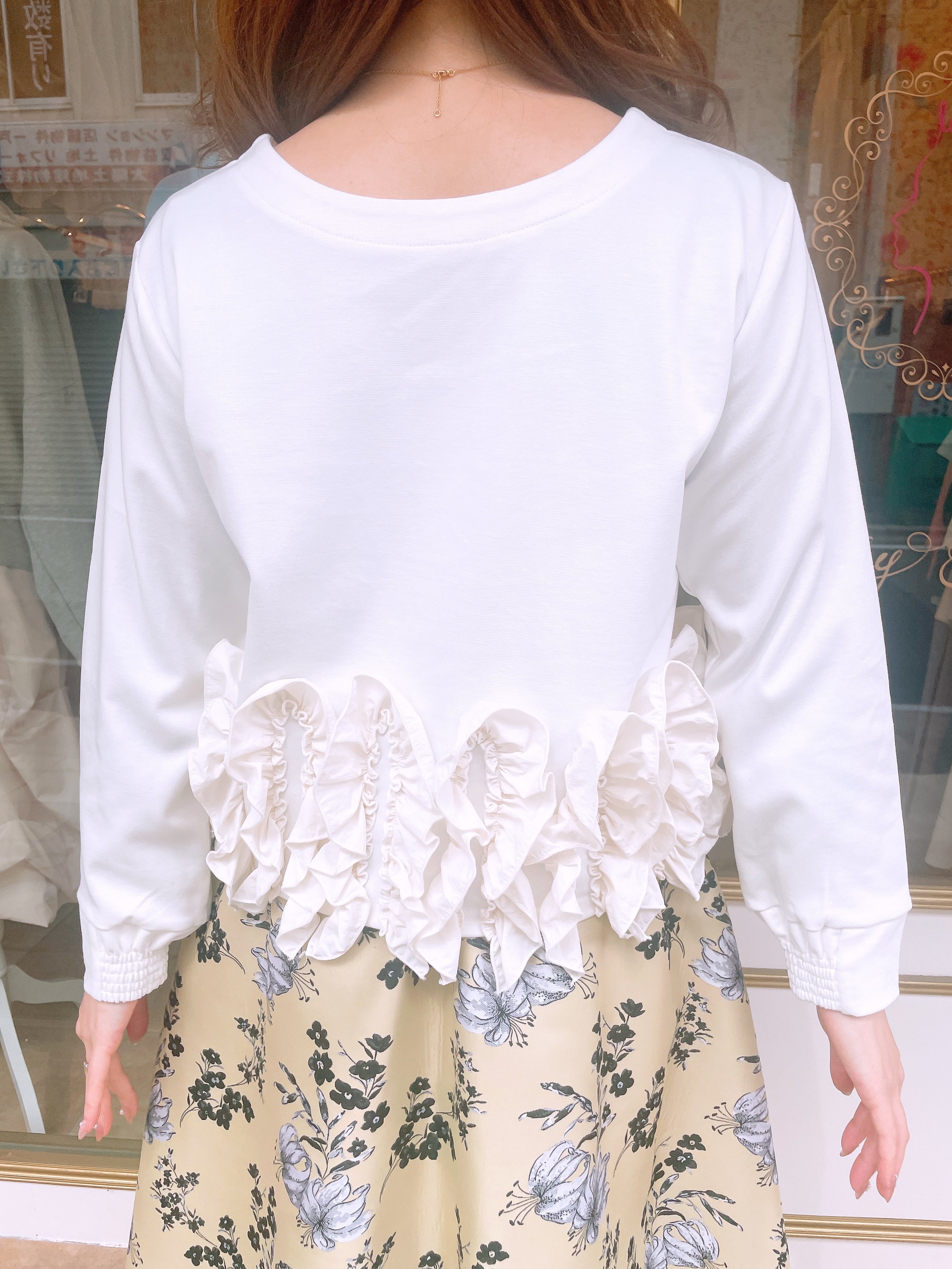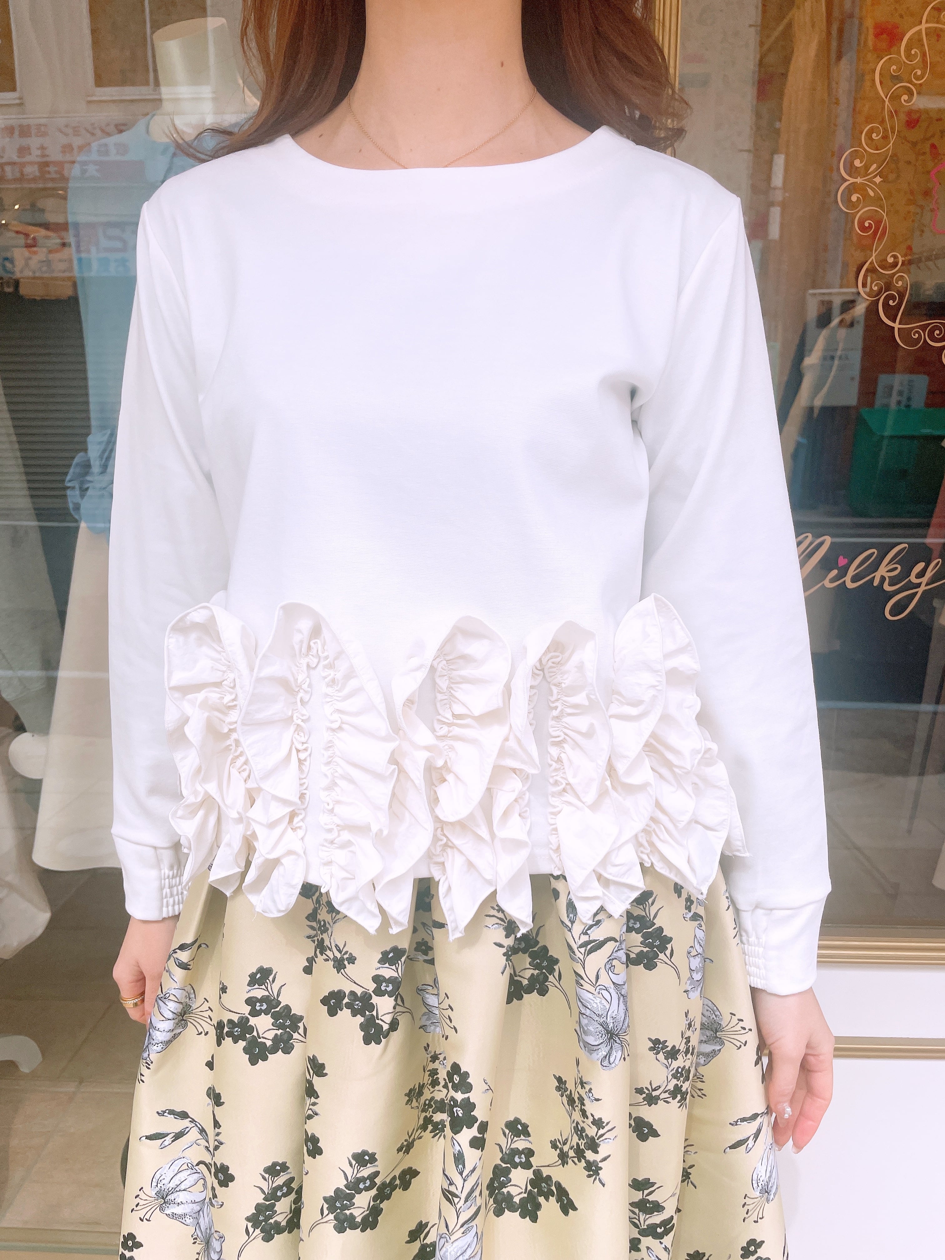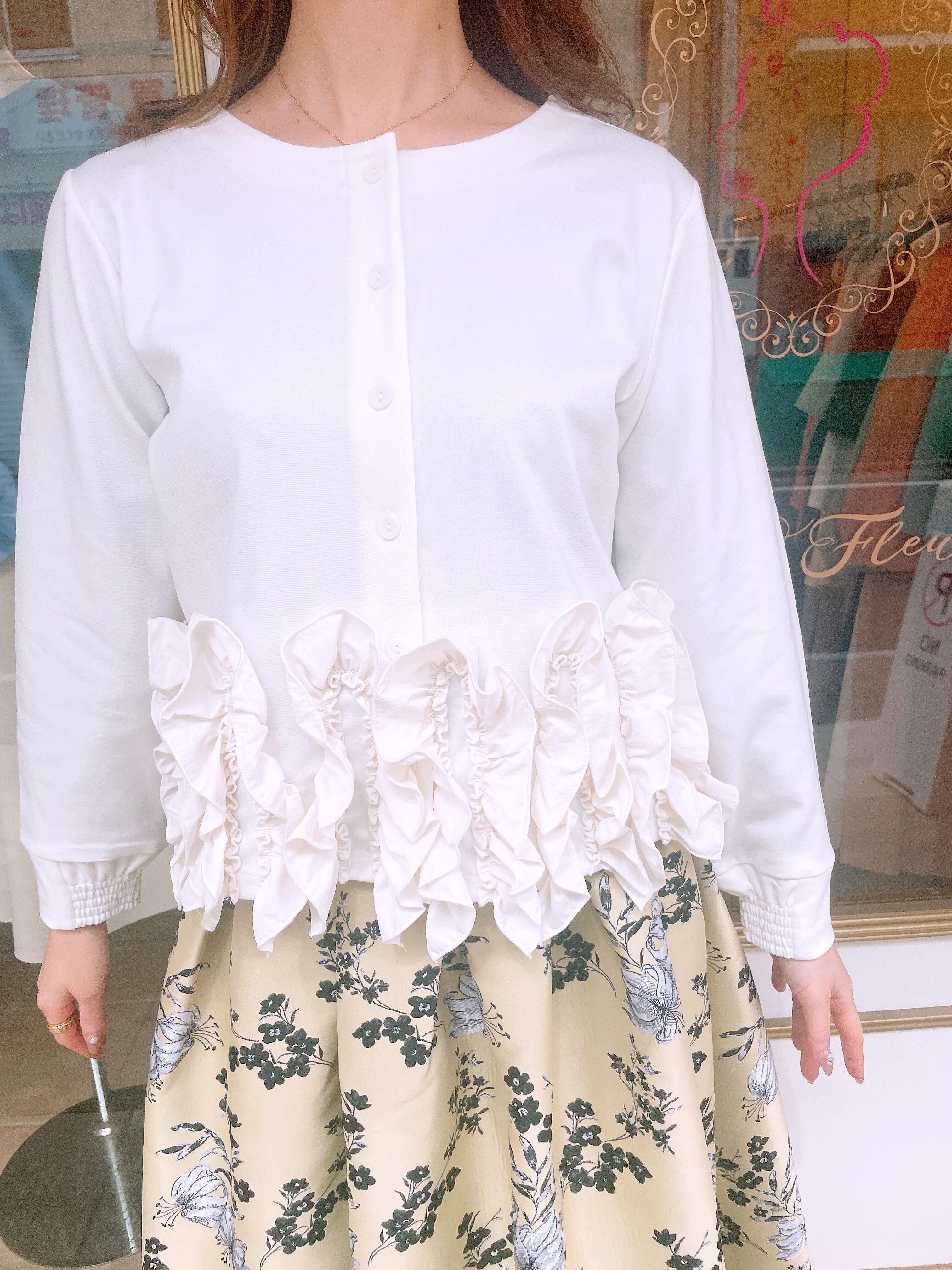 裾フリルが華やかな2wayトップス。