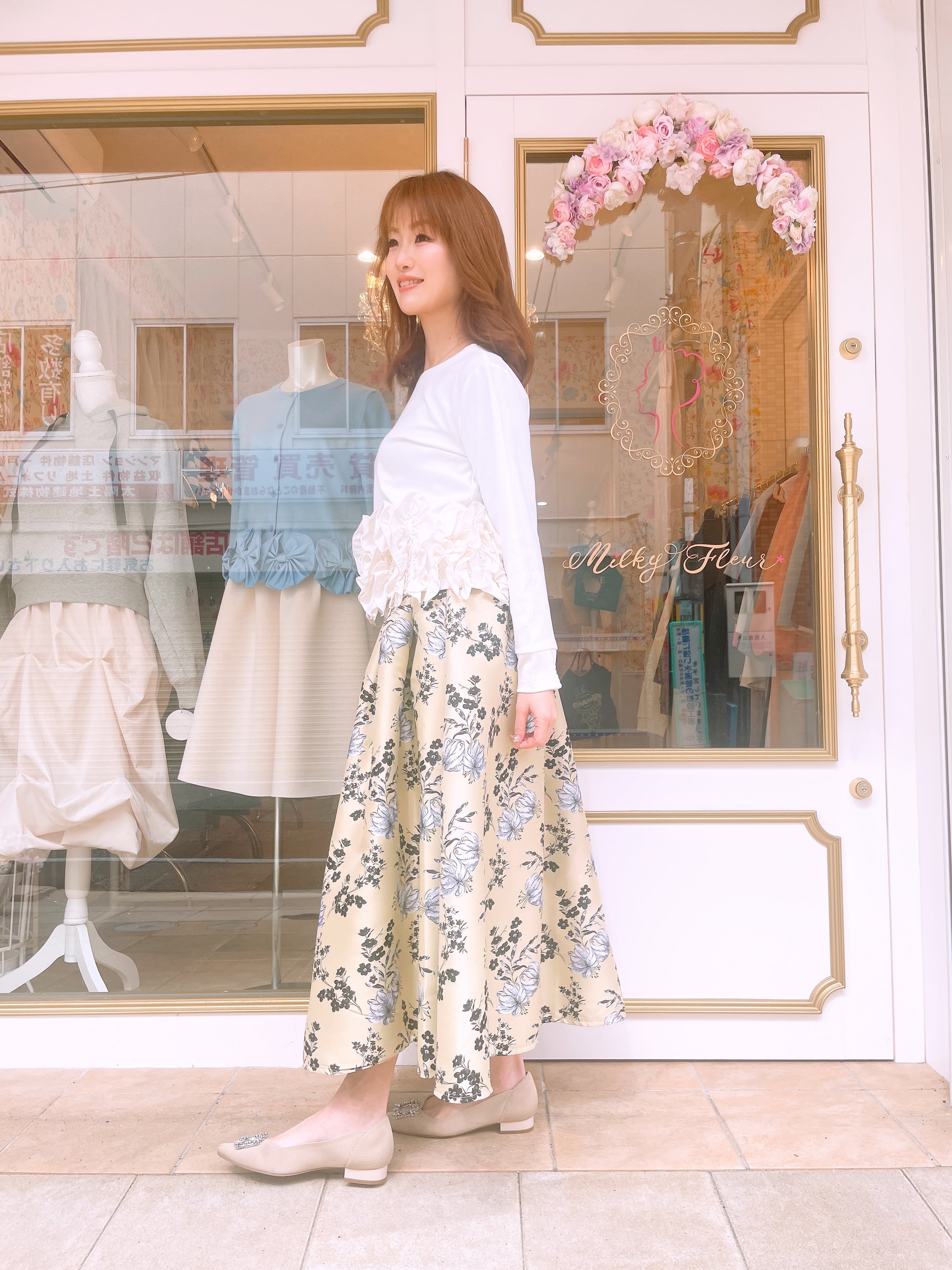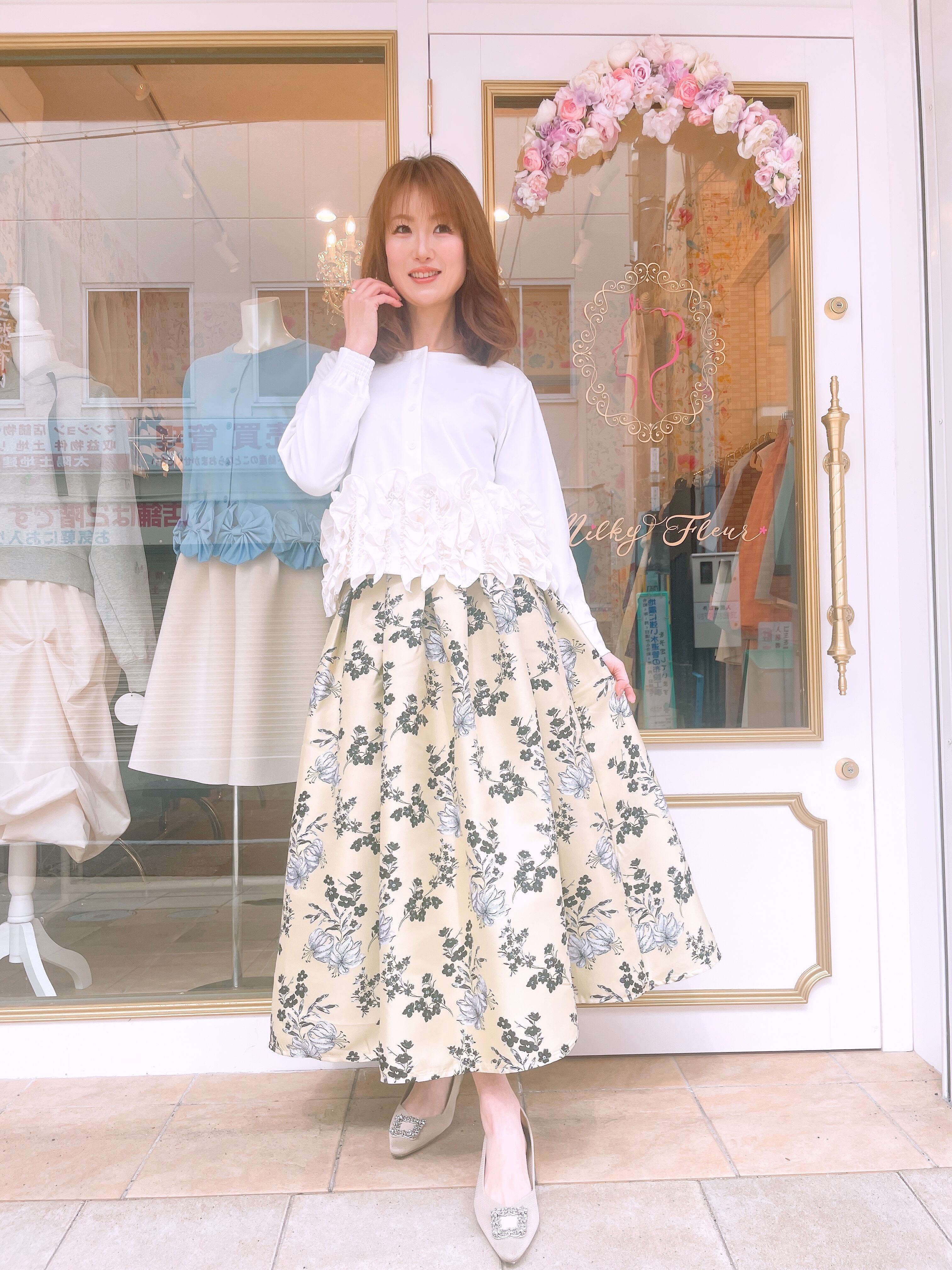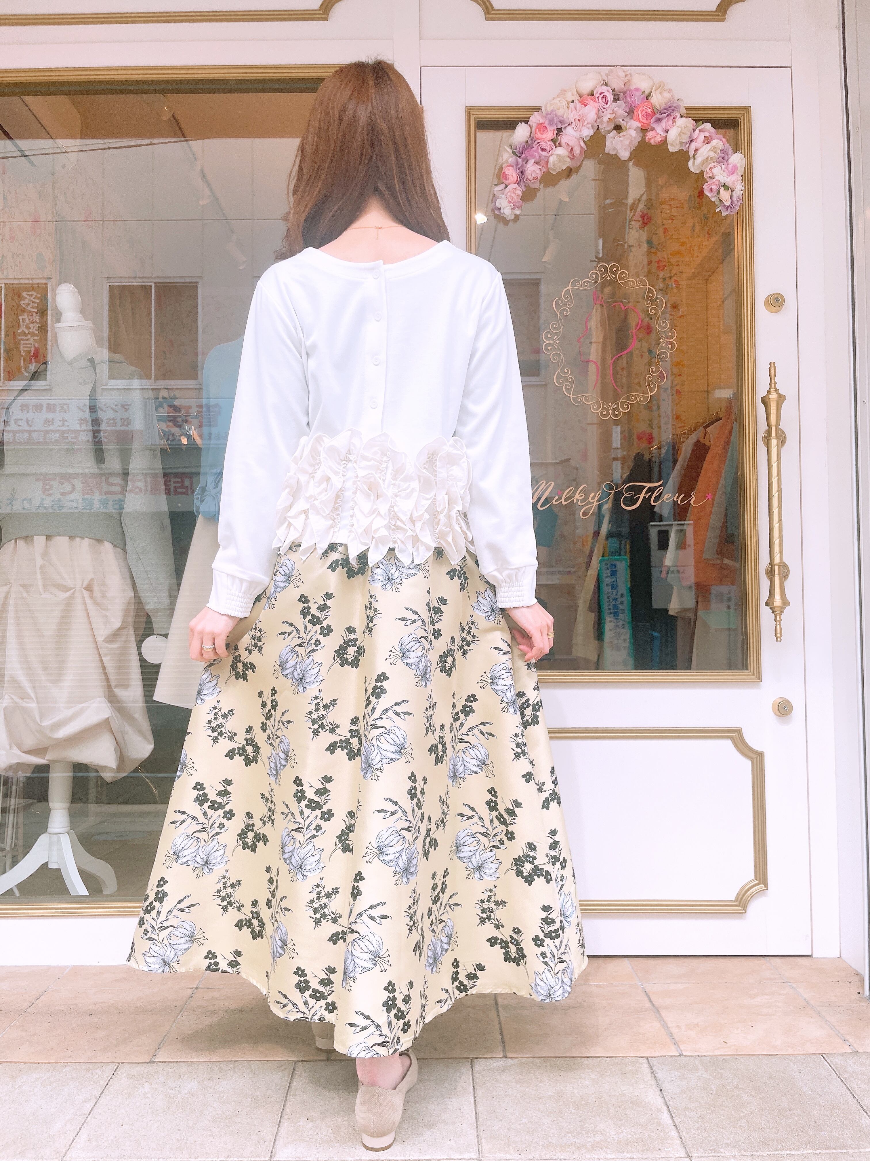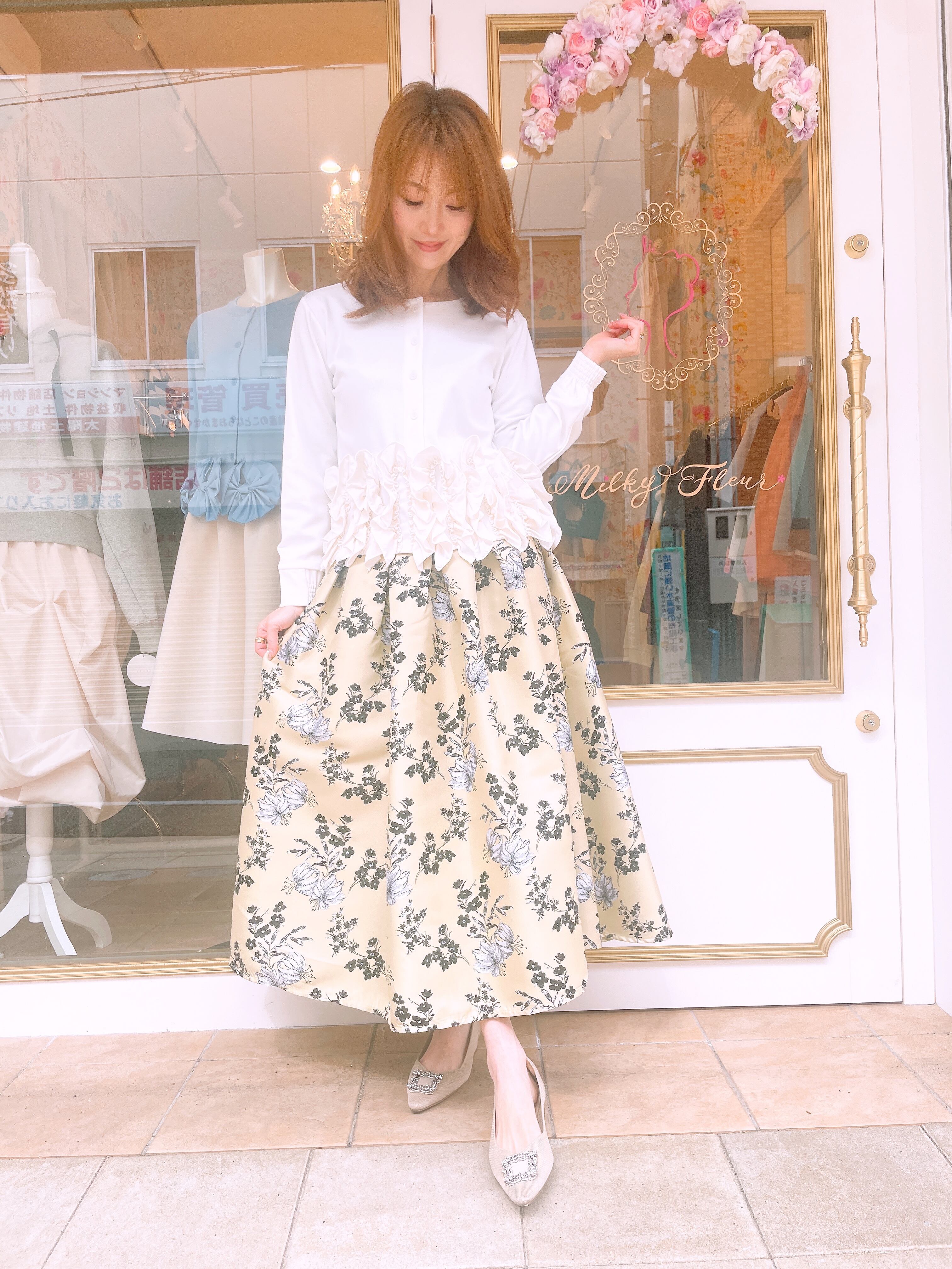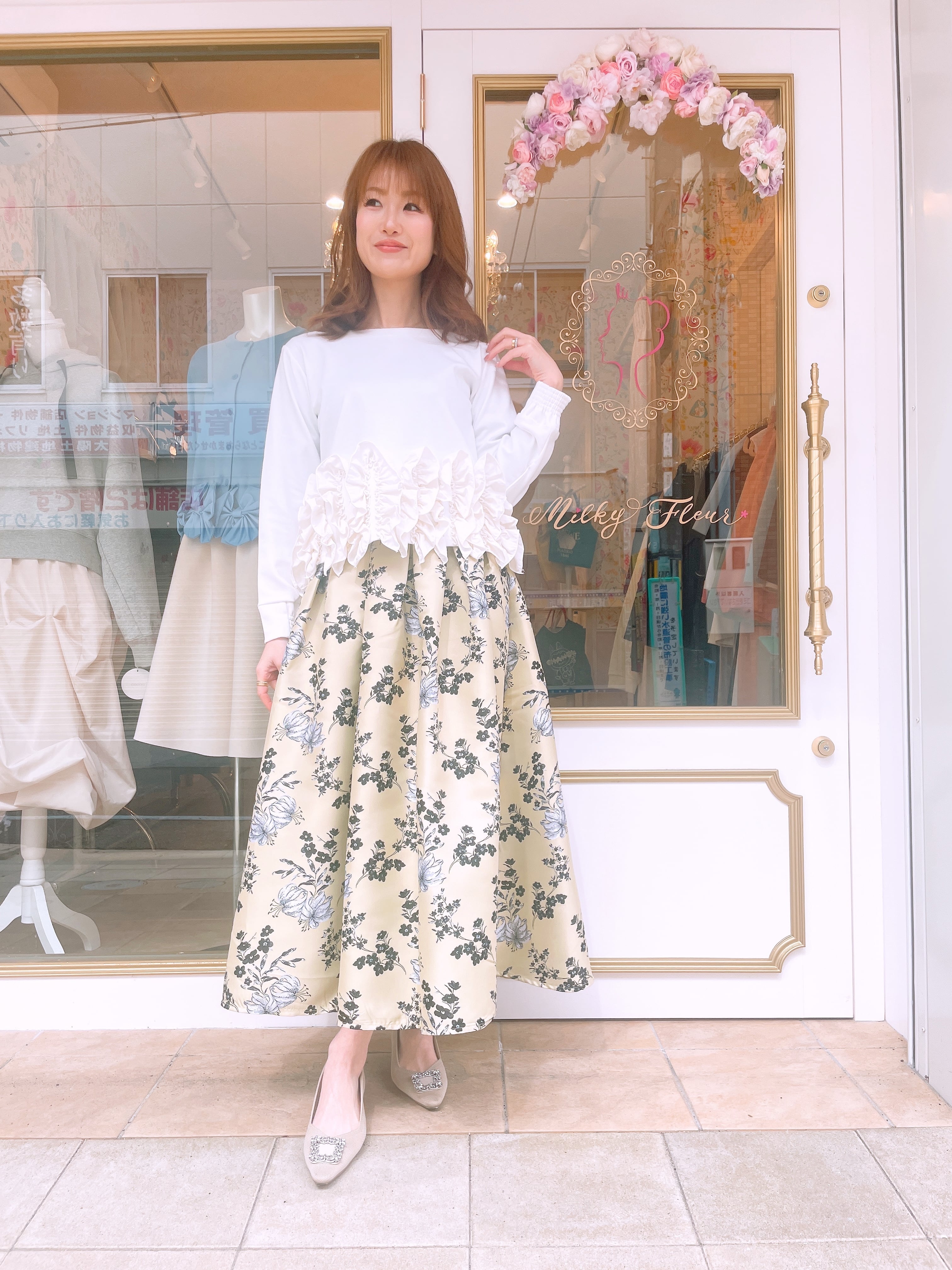 裾フリルが華やかな2wayトップス。