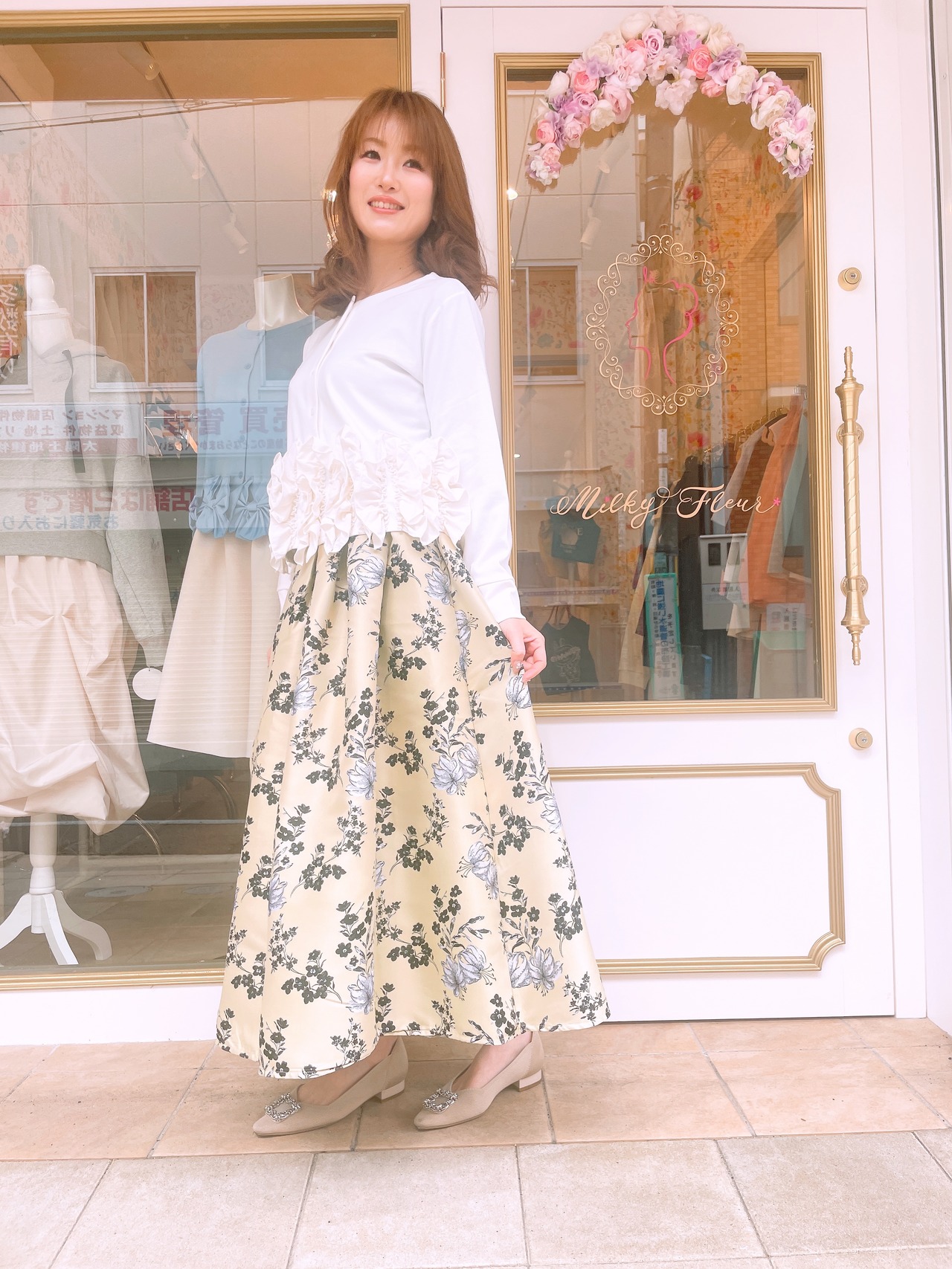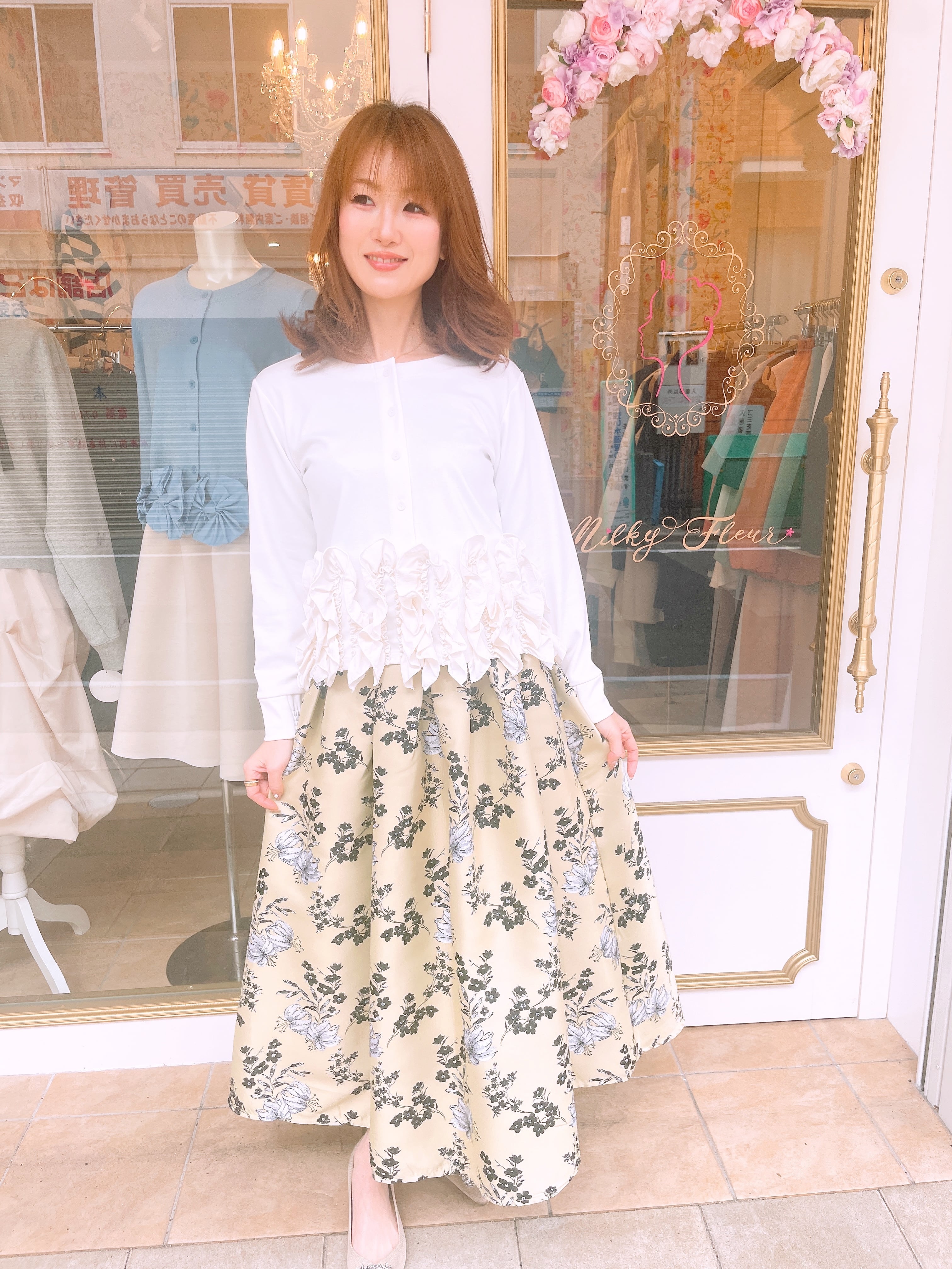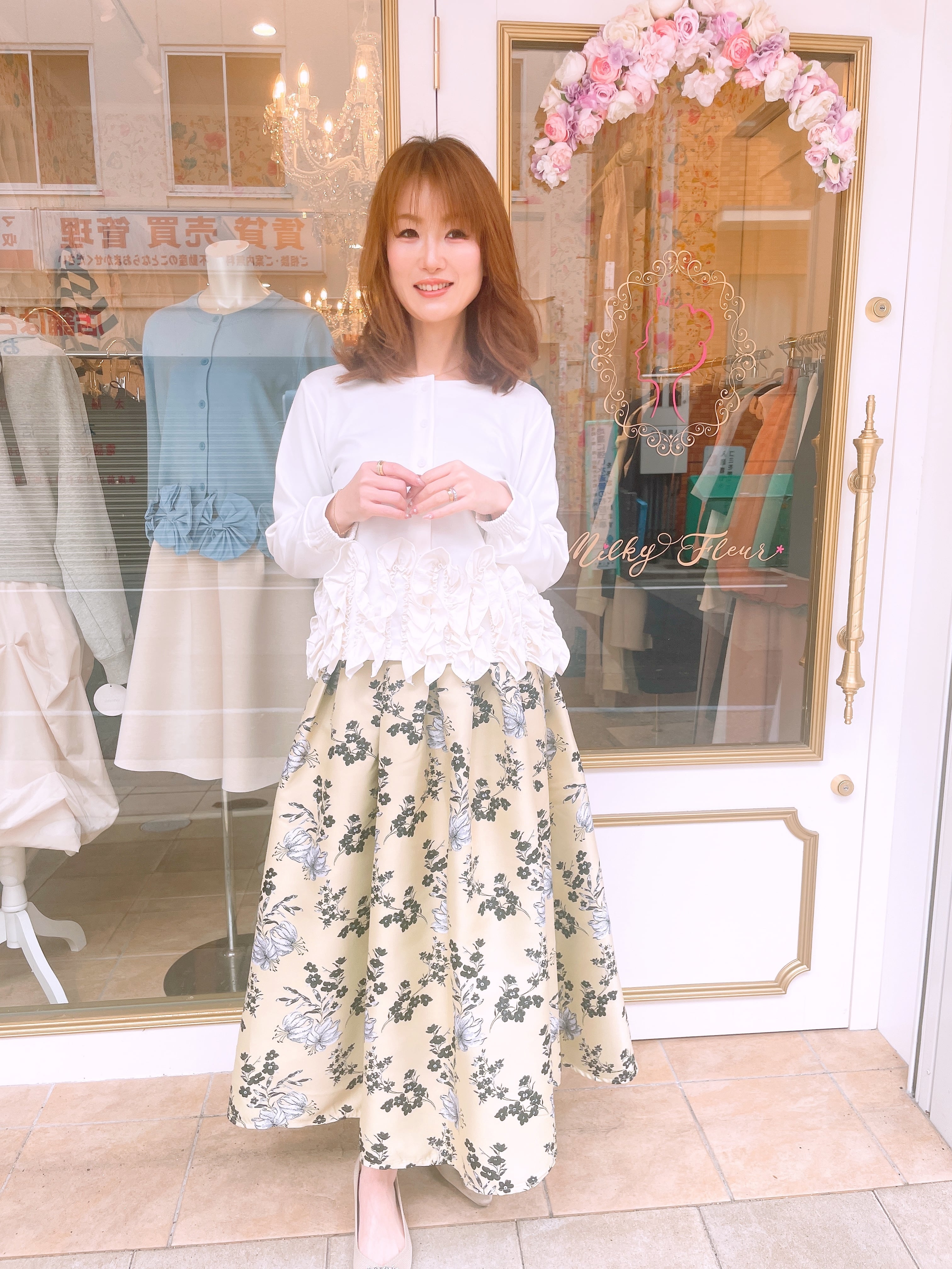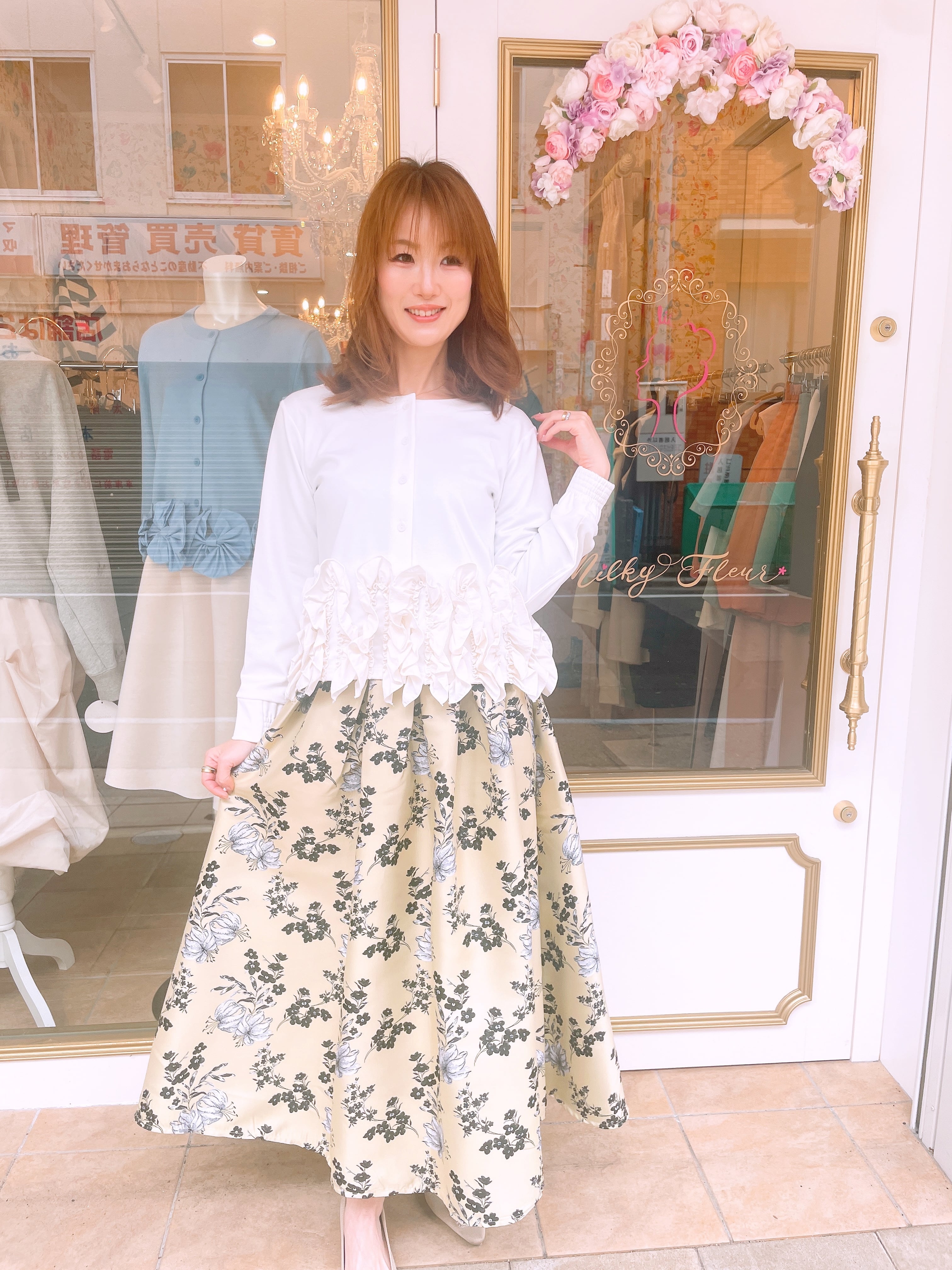 裾フリルが華やかな2wayトップス。