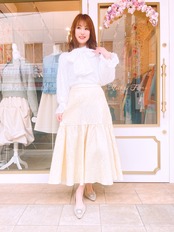 肩ギャザーや肩下のゴムギャザー、袖口のゴムでキャンディースリーブを作り、自然な立体感と女性らしいふんわり感を演出します。