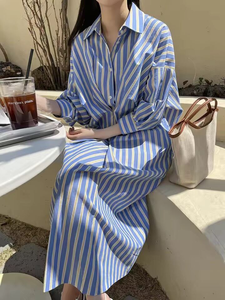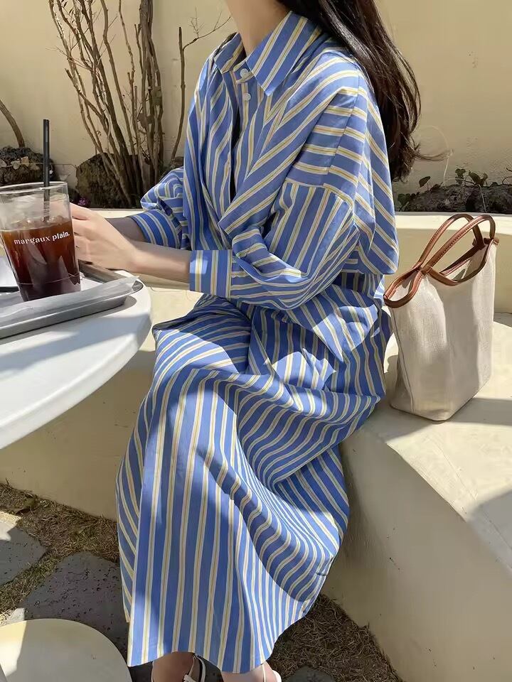 ストライプシャツワンピース(一ヶ月程でお届け)