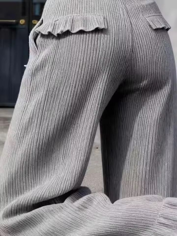 バックフリルと裾フリルがアクセントのプリーツパンツ。
