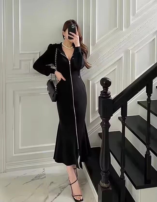 ジップアップデザインのパーカーワンピース。