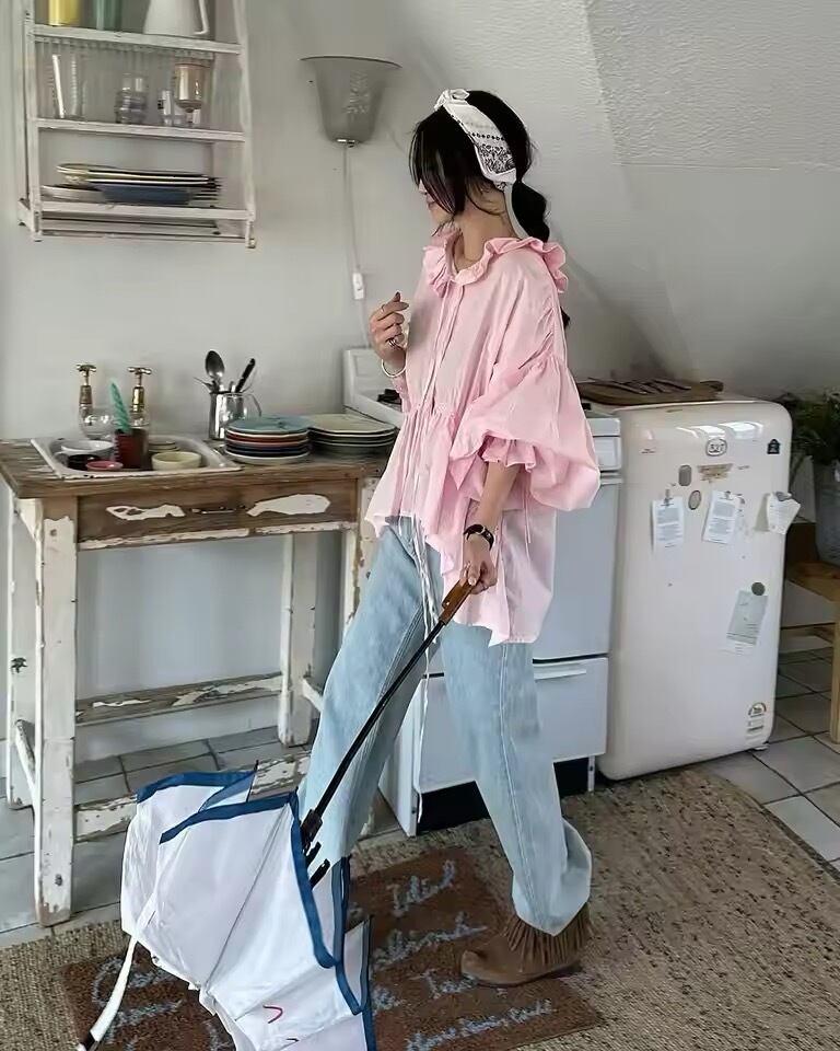 前開きで、ルーズなスタイリングもオシャレな羽織りアイテムに。