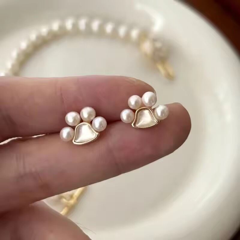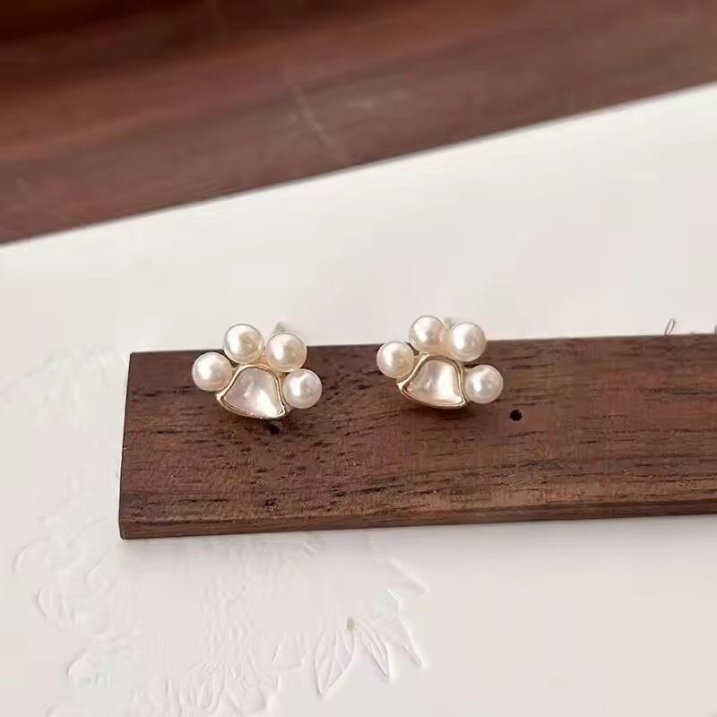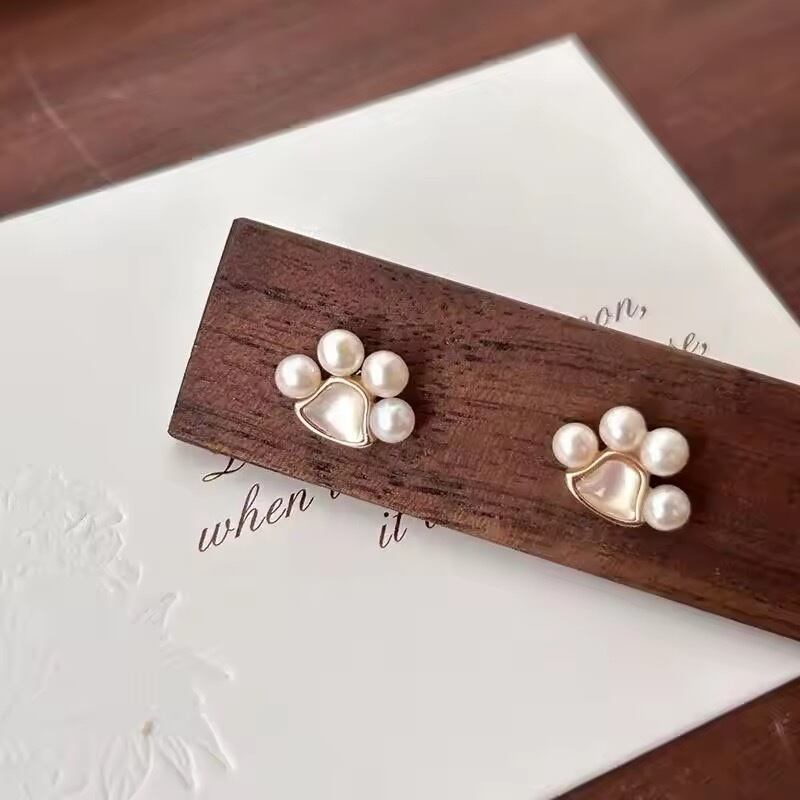 肉球デザインが可愛いパールピアス。