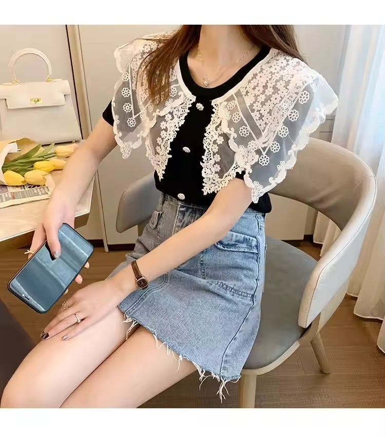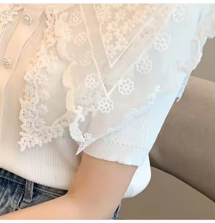 パールボタンもアクセントとなり、デニムスタイルにも映えるトップスです。