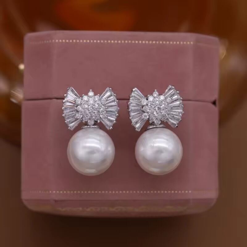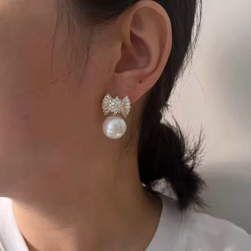ビジューリボンパールピアス(一ヶ月程でお届け)