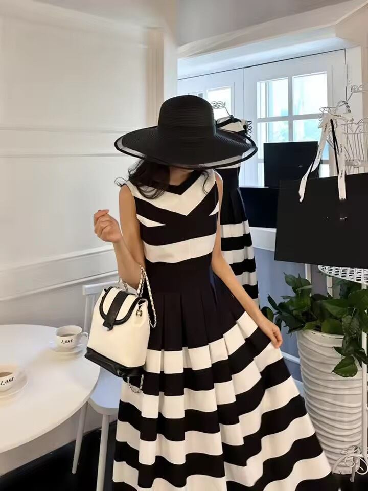 トップスはVボーダーデザインになり、スカートはウエスト配色が、スタイルアップに。