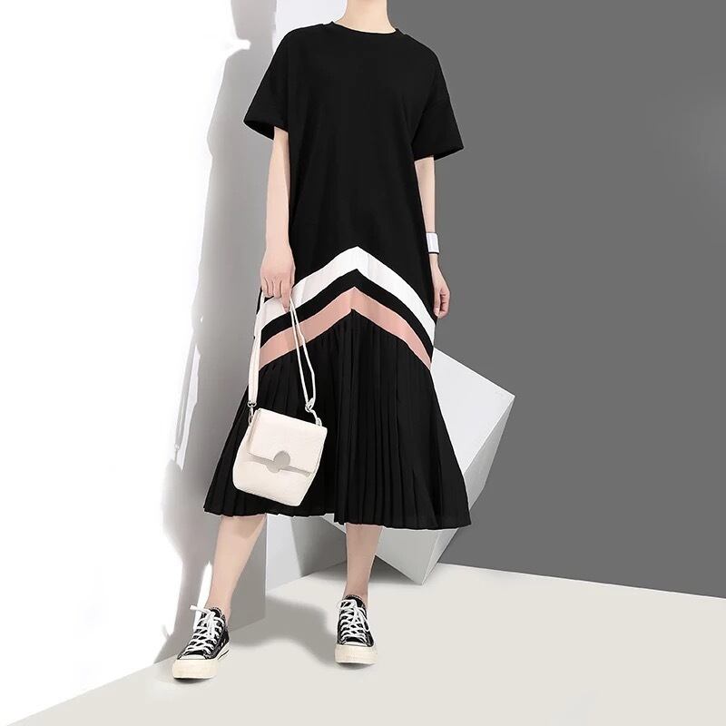 バイカラーラインプリーツワンピース(2〜3週間でお届け)