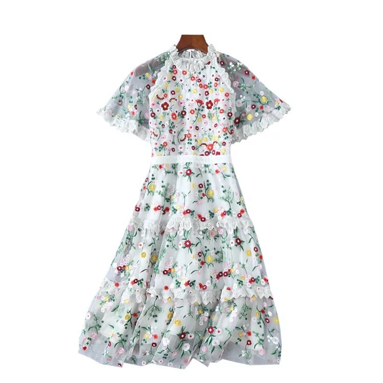 フラワー刺繍レースワンピース(2〜3週間程でお届け)