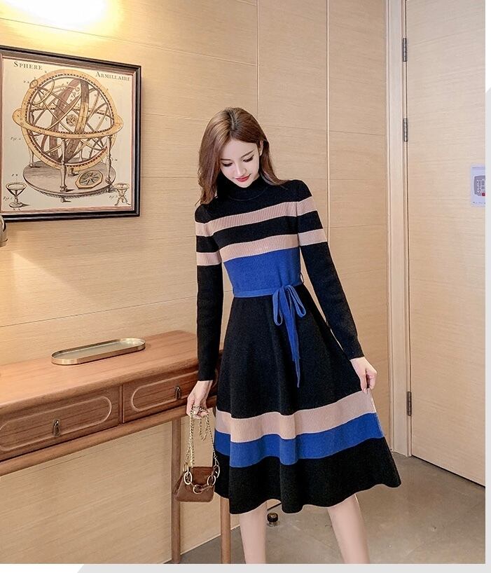 配色ボーダーデザインのニットワンピース。