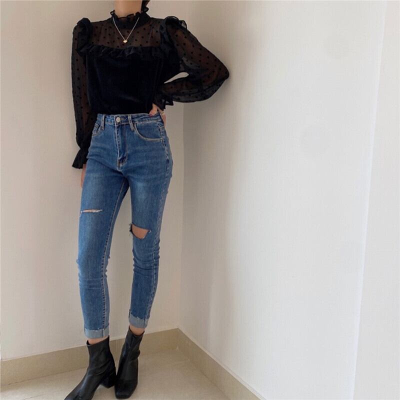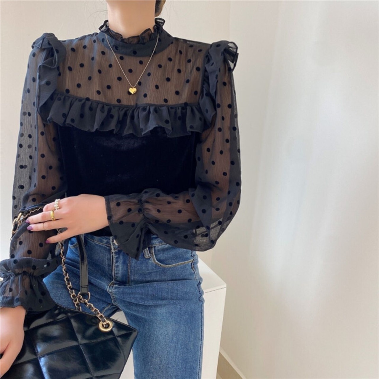 ドットフリルブラウス(2-4週間程でお届け)