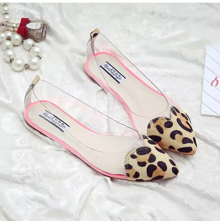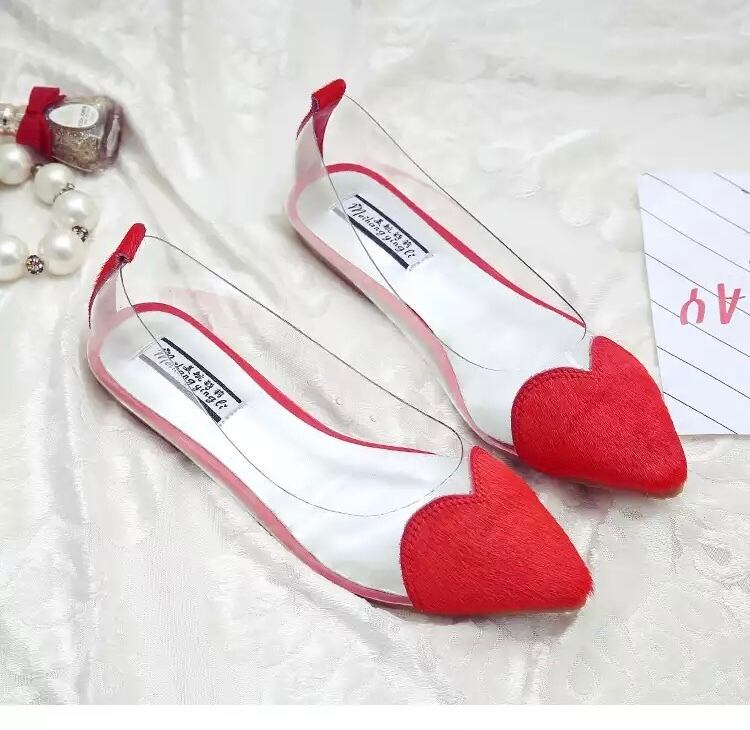 ハートのトゥがデザインされたクリアフラットシューズ。