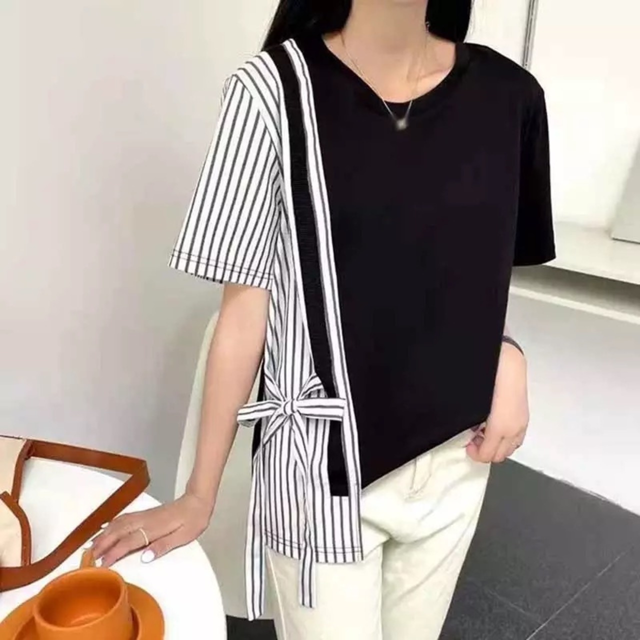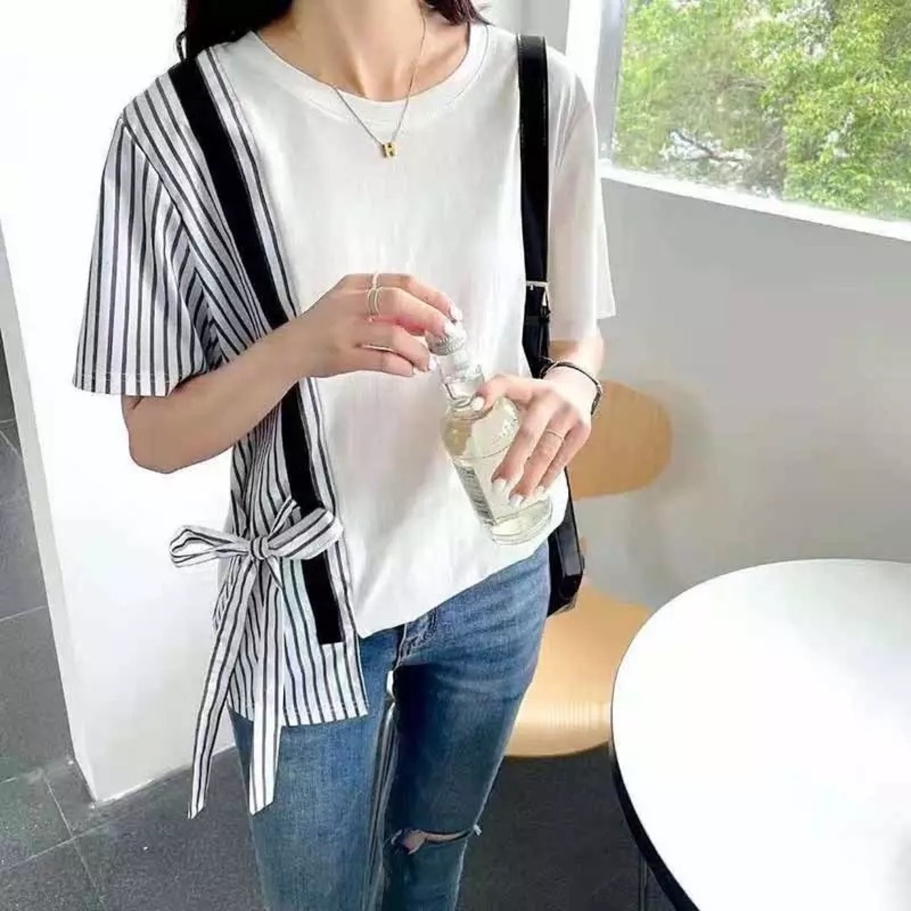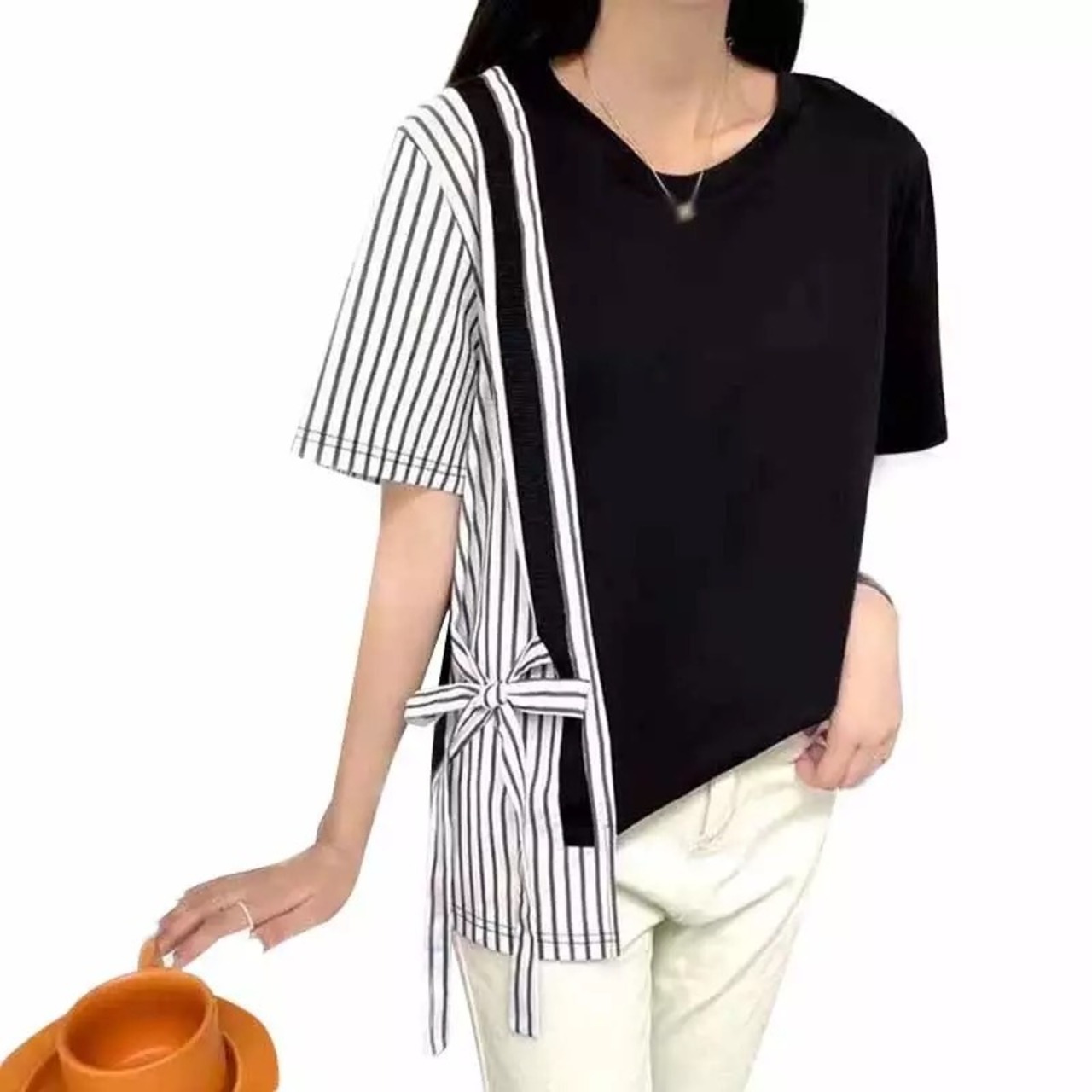 配色ストライプリボンTシャツ(3-4週間程でお届け)