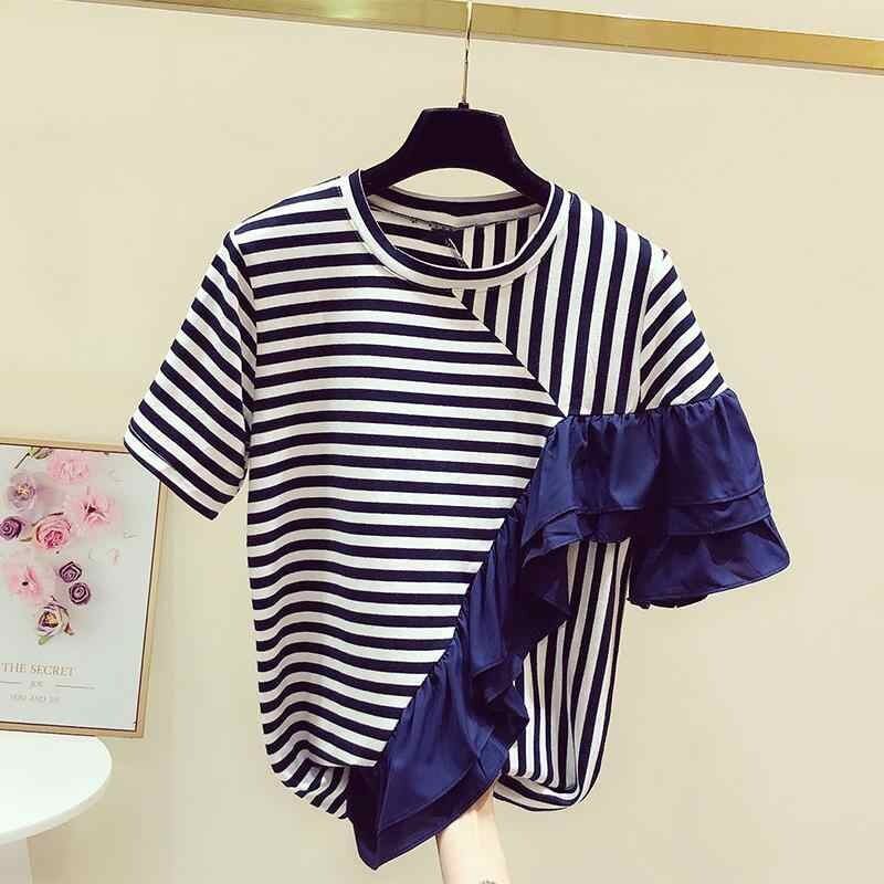 ストライプとボーダーにフリルがアクセントとなったTシャツ。
