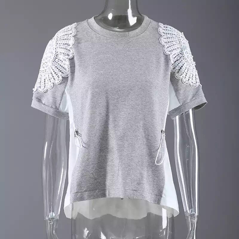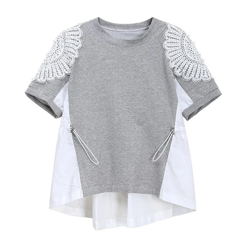 ショルダーレース配色Tシャツ(3-4週間程でお届け)