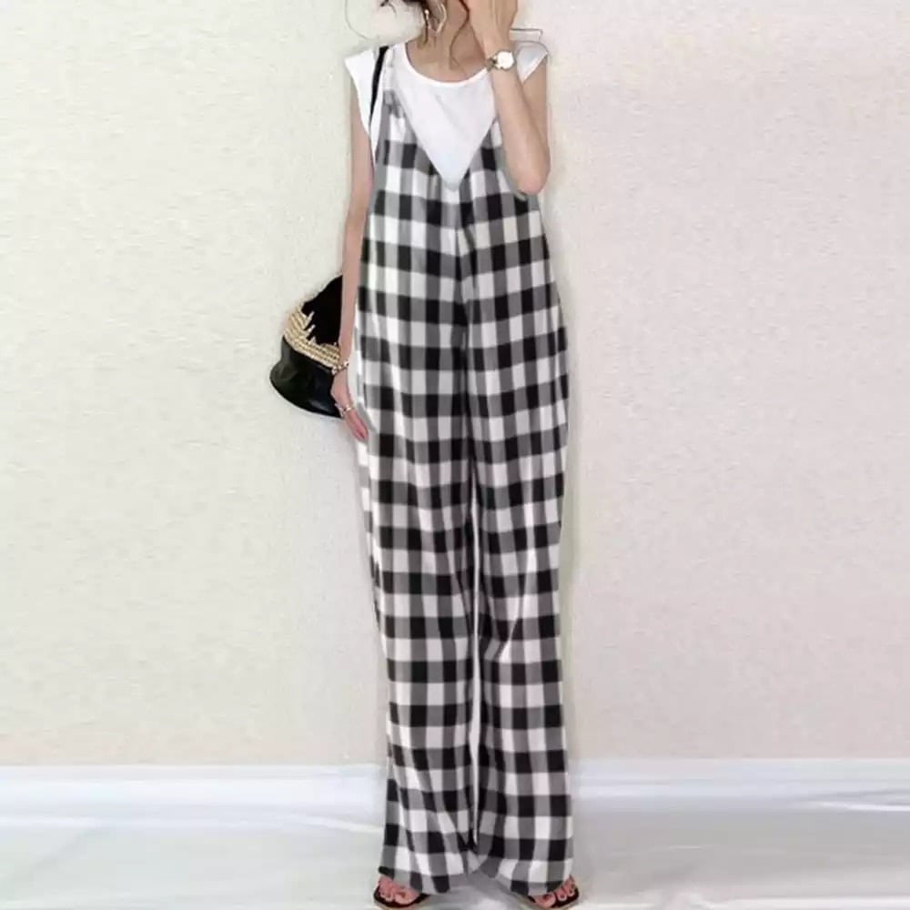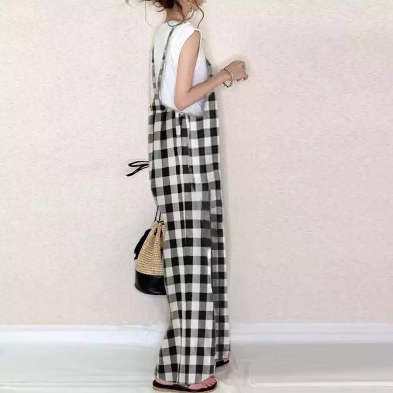 ギンガムチェックデザインのサロペット。
