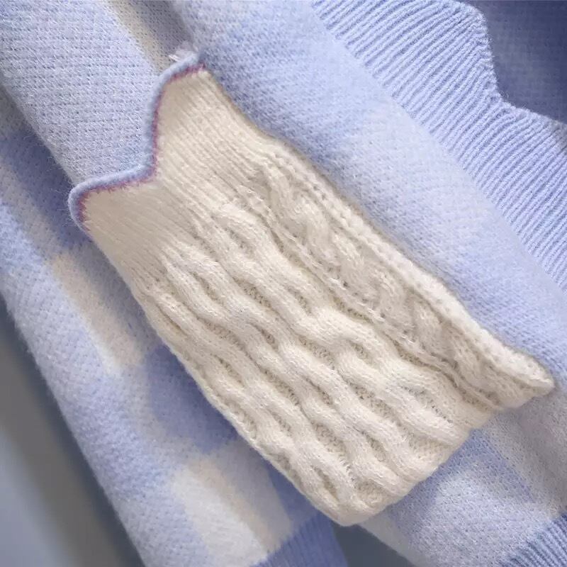 配色チェックケーブルカーディガン(3-4週間程でお届け)
