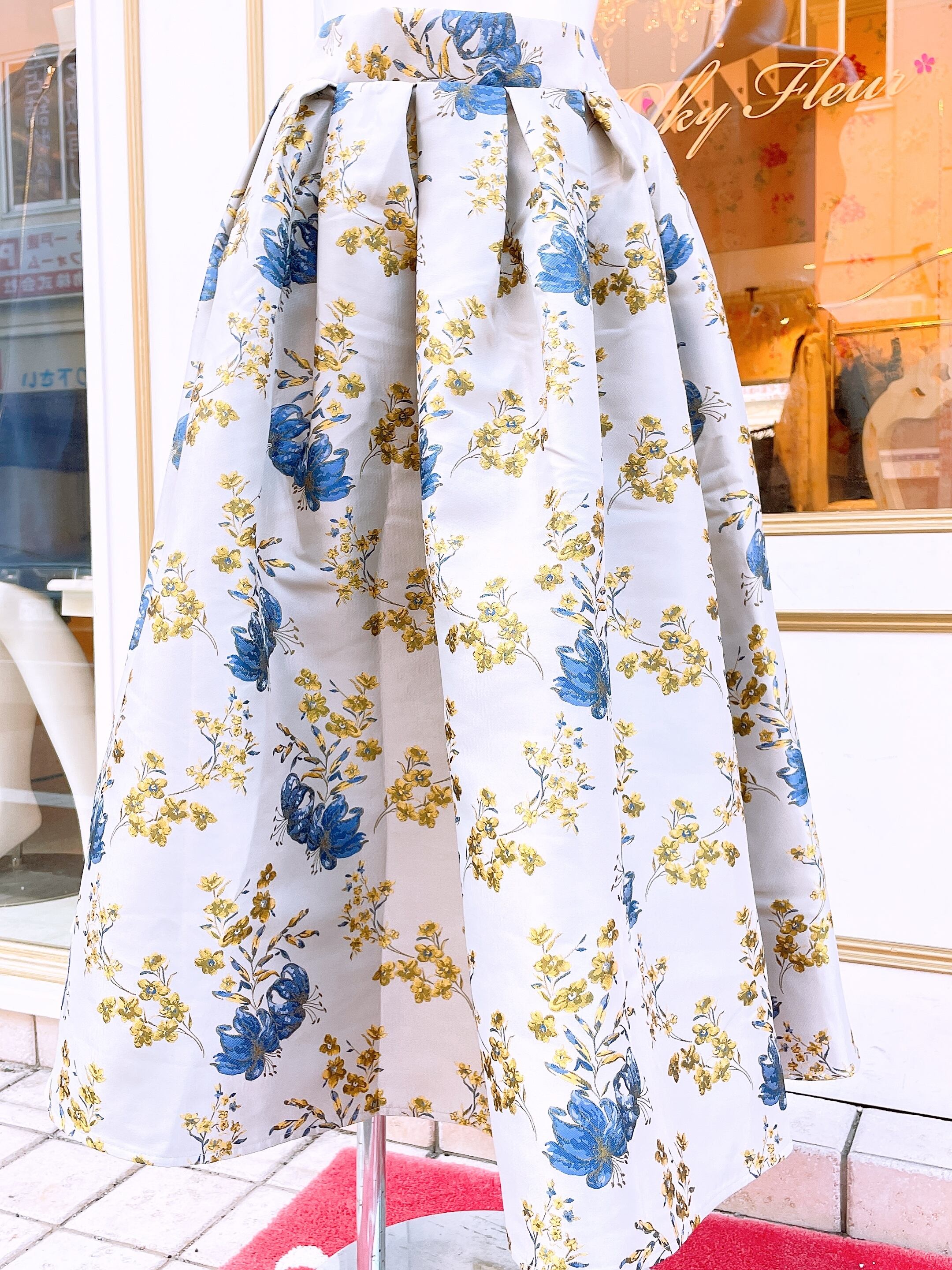 ハリ感が華やかで、たっぷり使用されたジャガードお素材にも高級感があるスカート。