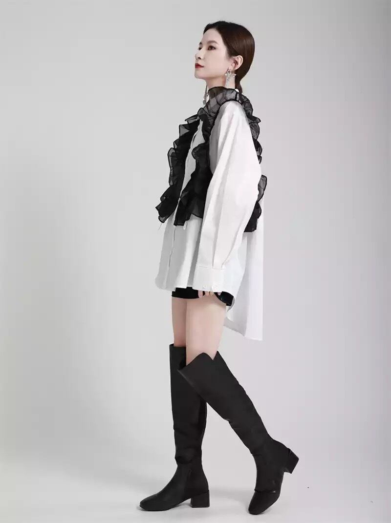 アシンメトリーフリルブラウス(3-4週間程でお届け)