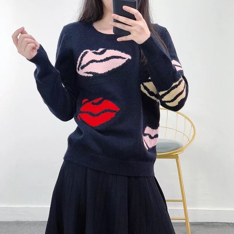 ペイント風のリップ柄が可愛いニット。