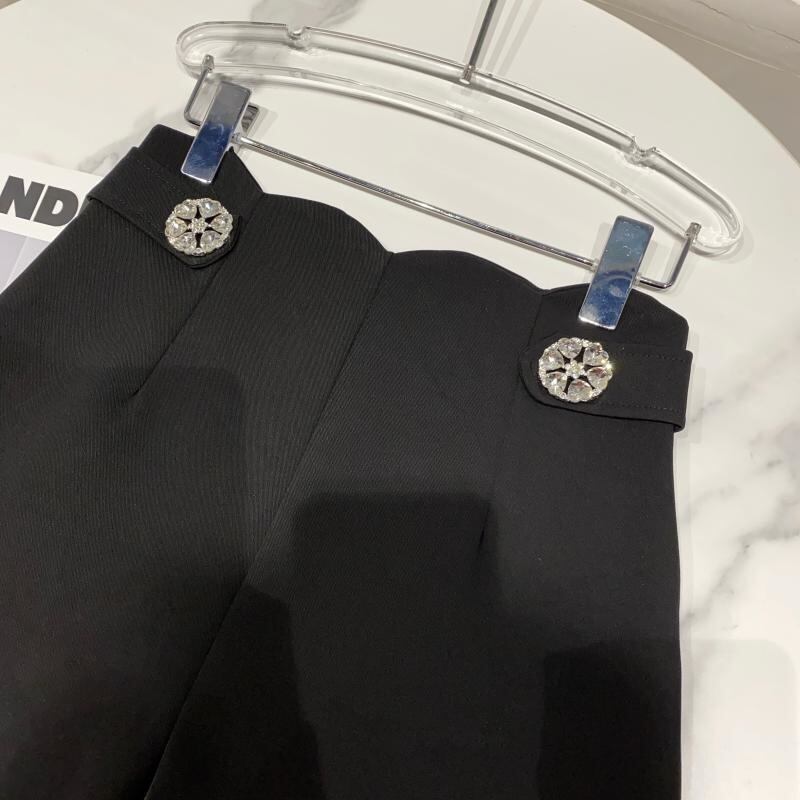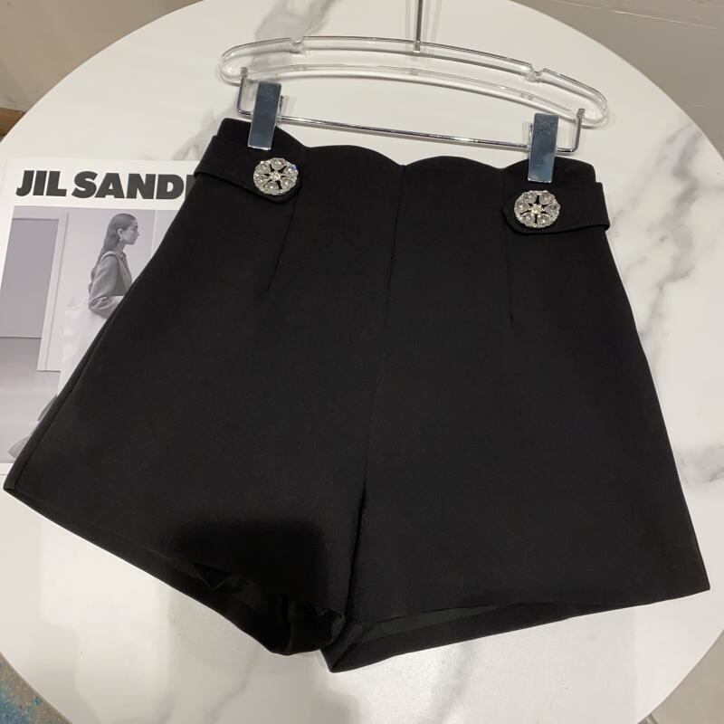 スカラップデザインのウエストとビジューボタンがアクセントのショートパンツ。