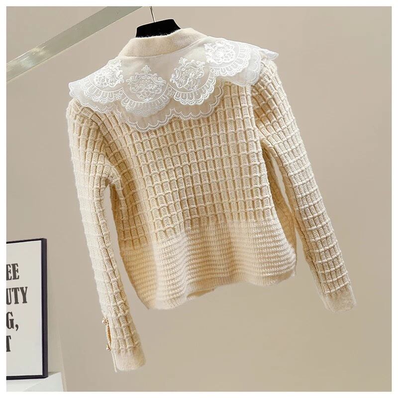 レースカラーニットカーディガン(3-4週間程でお届け)
