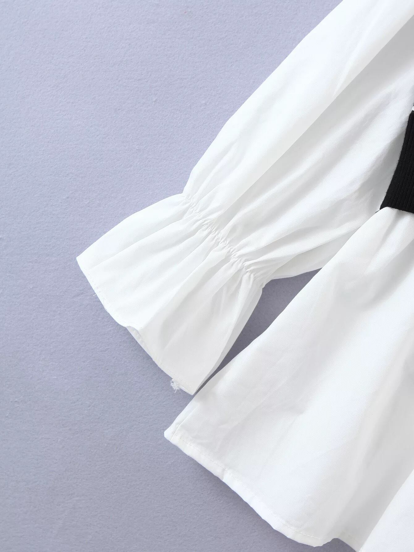 チェック柄ニットにブラウスがドッキングデザインになったトップス。