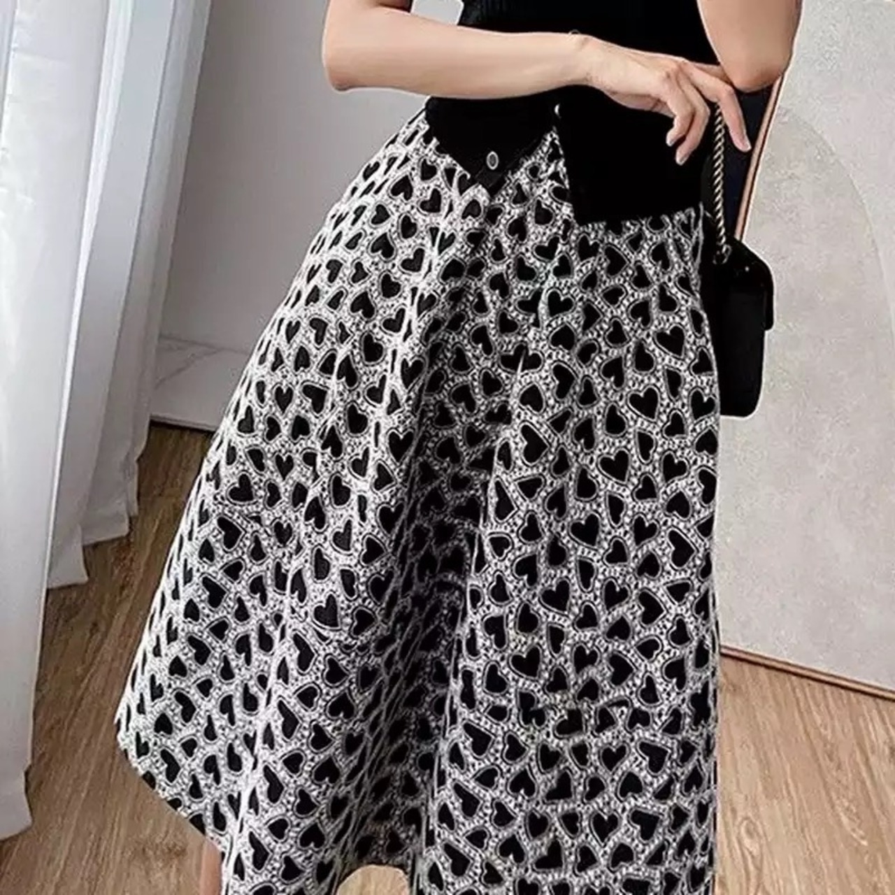 ハート柄のレース刺繍が華やかなフレアスカート。