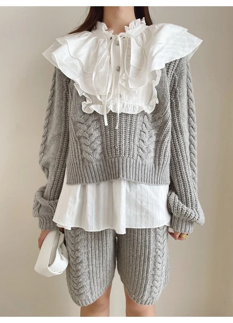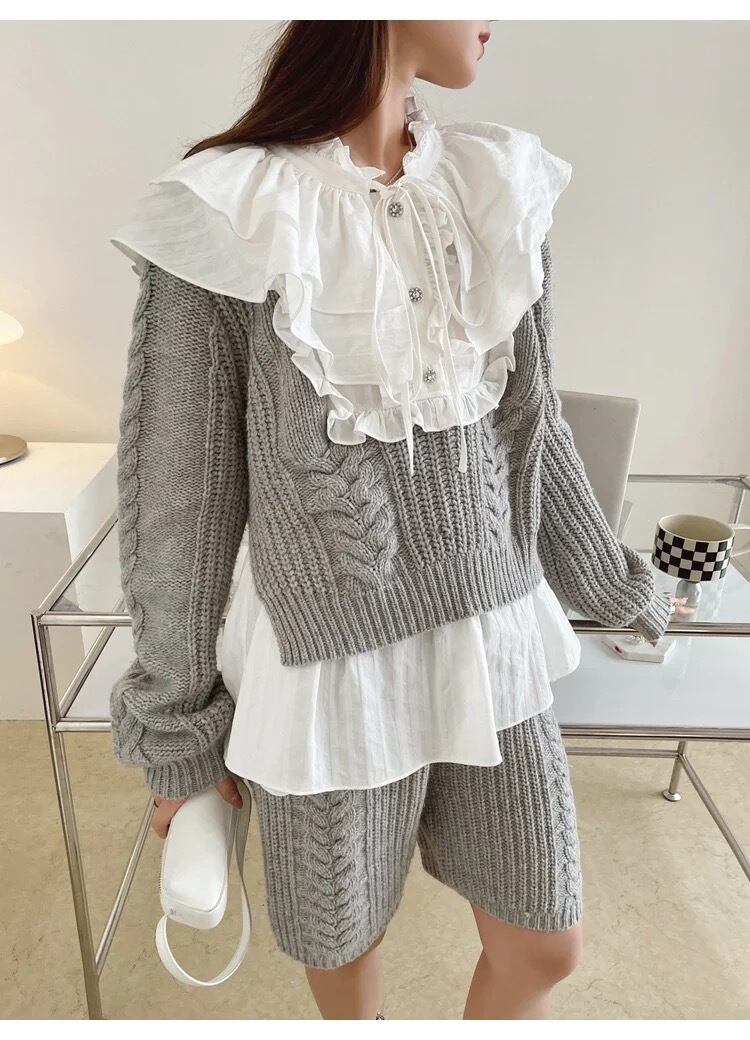 ビッグカラーブラウスドッキングニット(1ヶ月程でお届け)