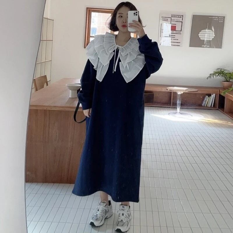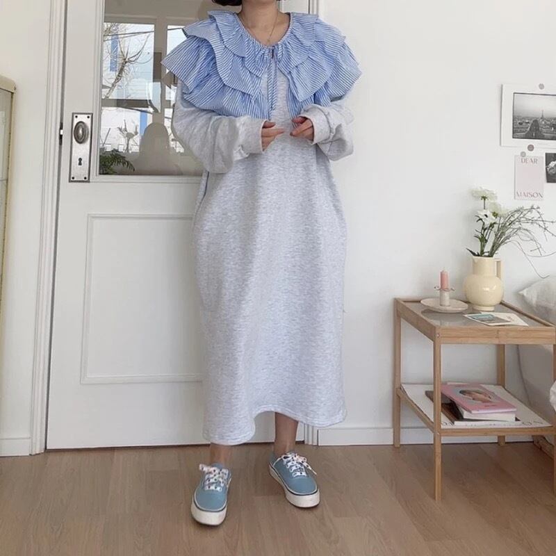 フリルビッグカラーがアクセントのカジュアルワンピース。