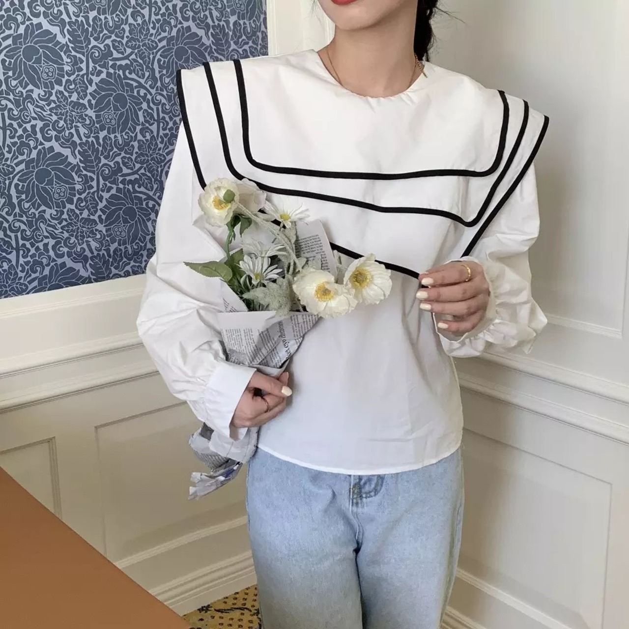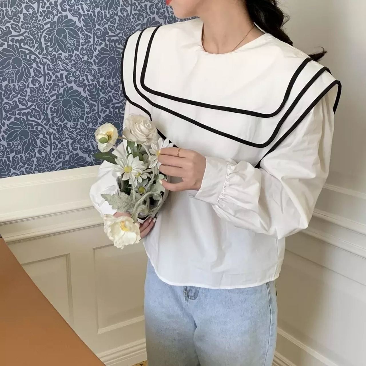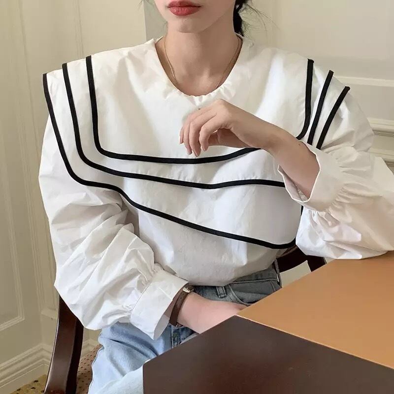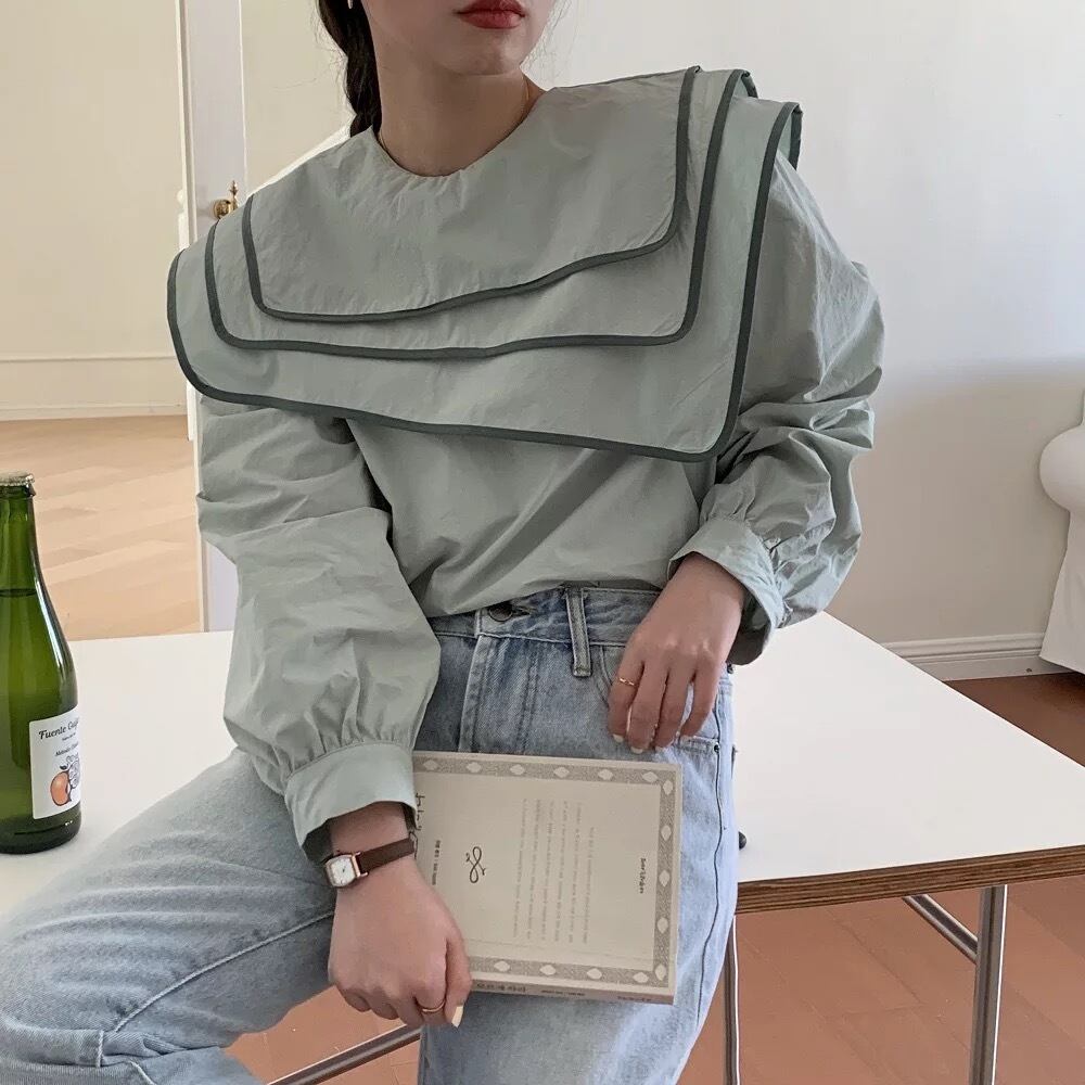 配色セーラーカラーブラウス(1ヶ月程でお届け)
