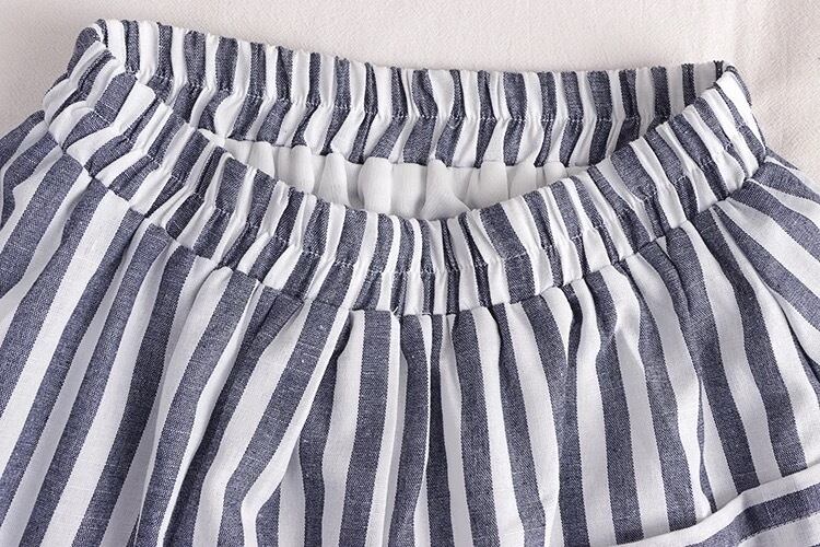 ストライプ地にボーダーポケットがアクセントのスカート。