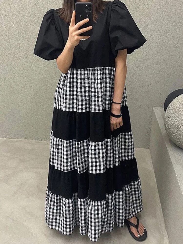 ギンガムチェック配色ワンピース(一ヶ月程でお届け)