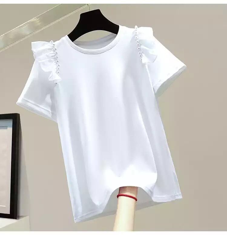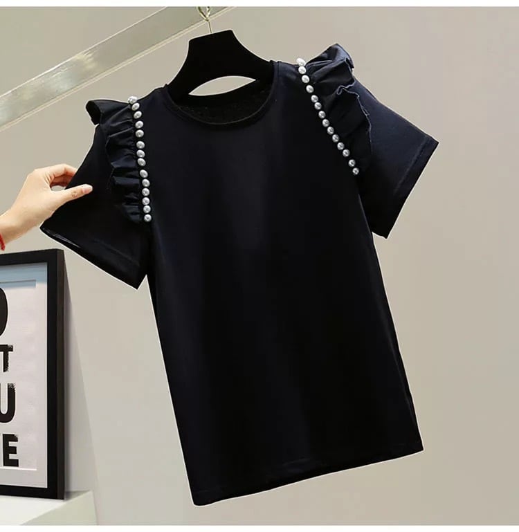 パールフリルショルダーTシャツ(一ヶ月程でお届け)