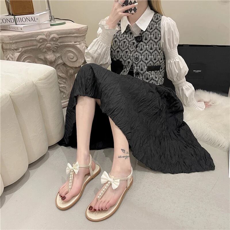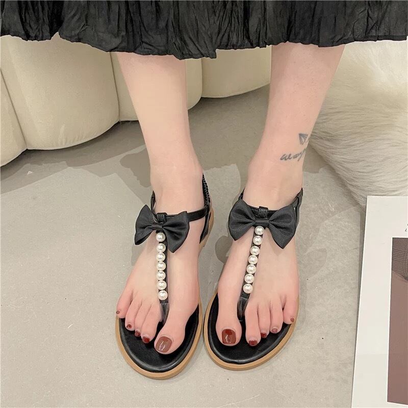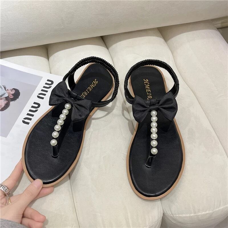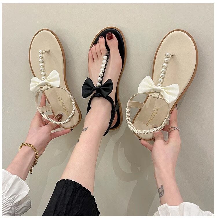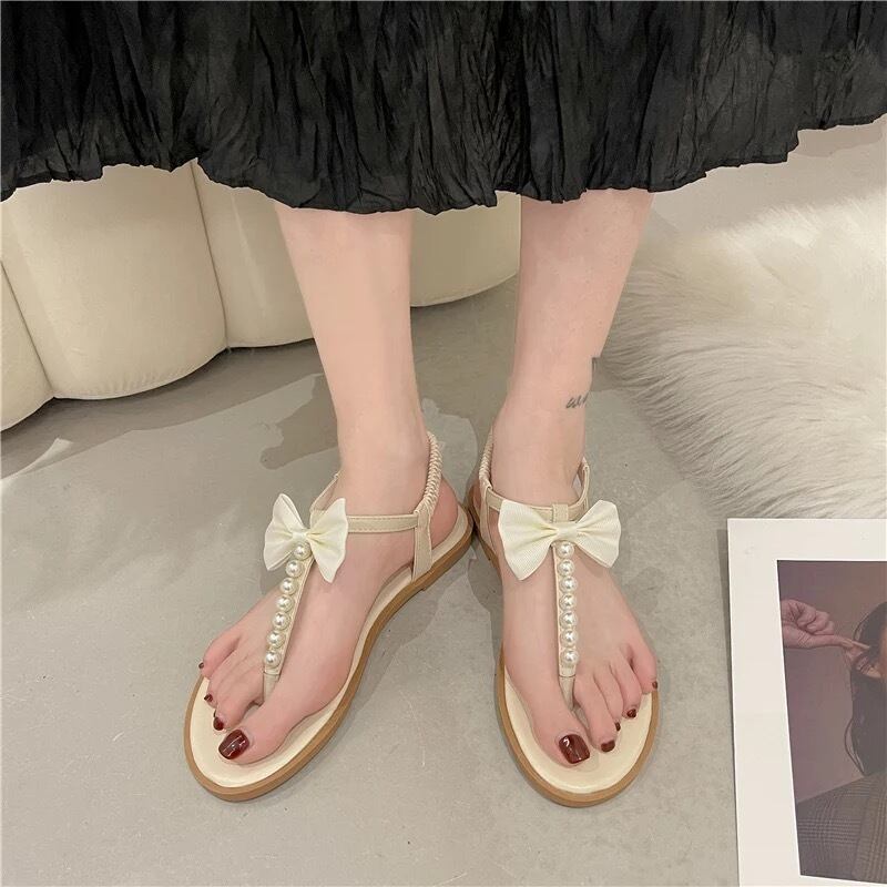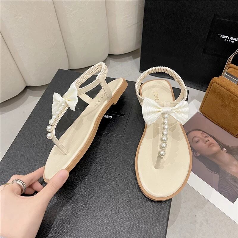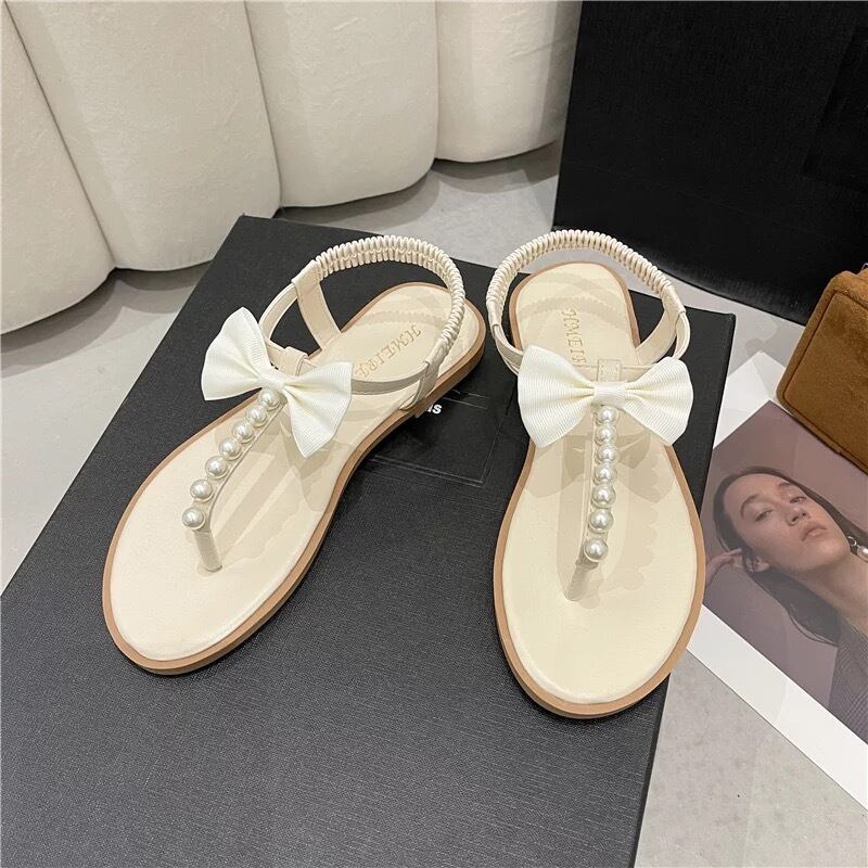 パールリボンフラットサンダル(一ヶ月程でお届け)