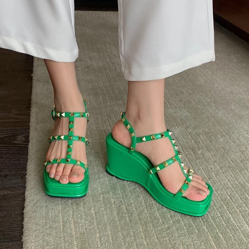 スタッズデザインのウェッジサンダル。