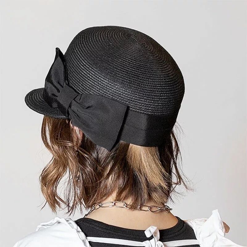 サイドリボンデザインのストローキャスケット。