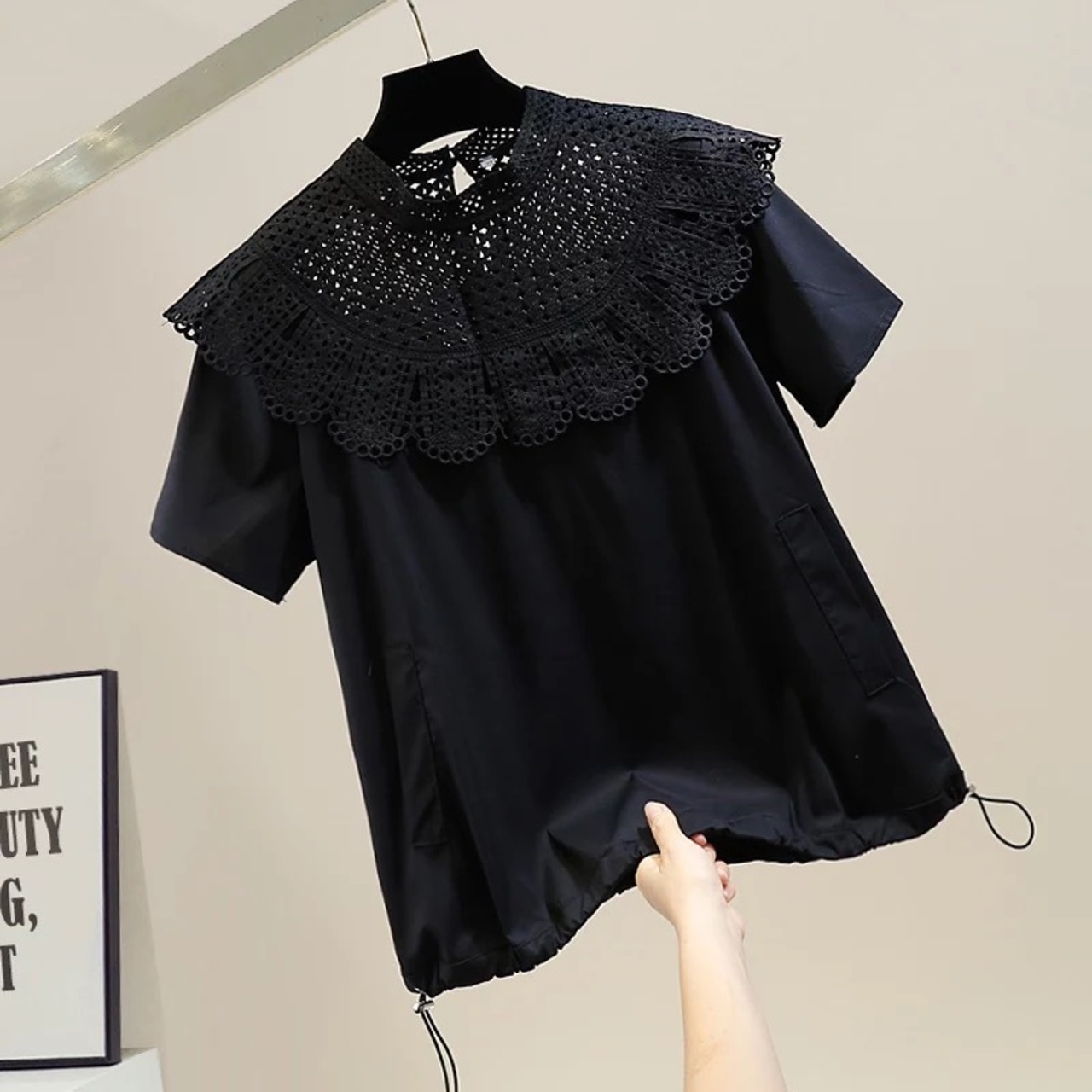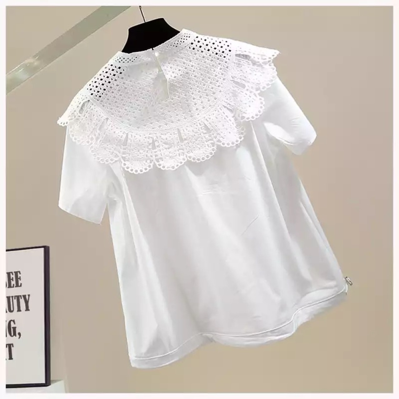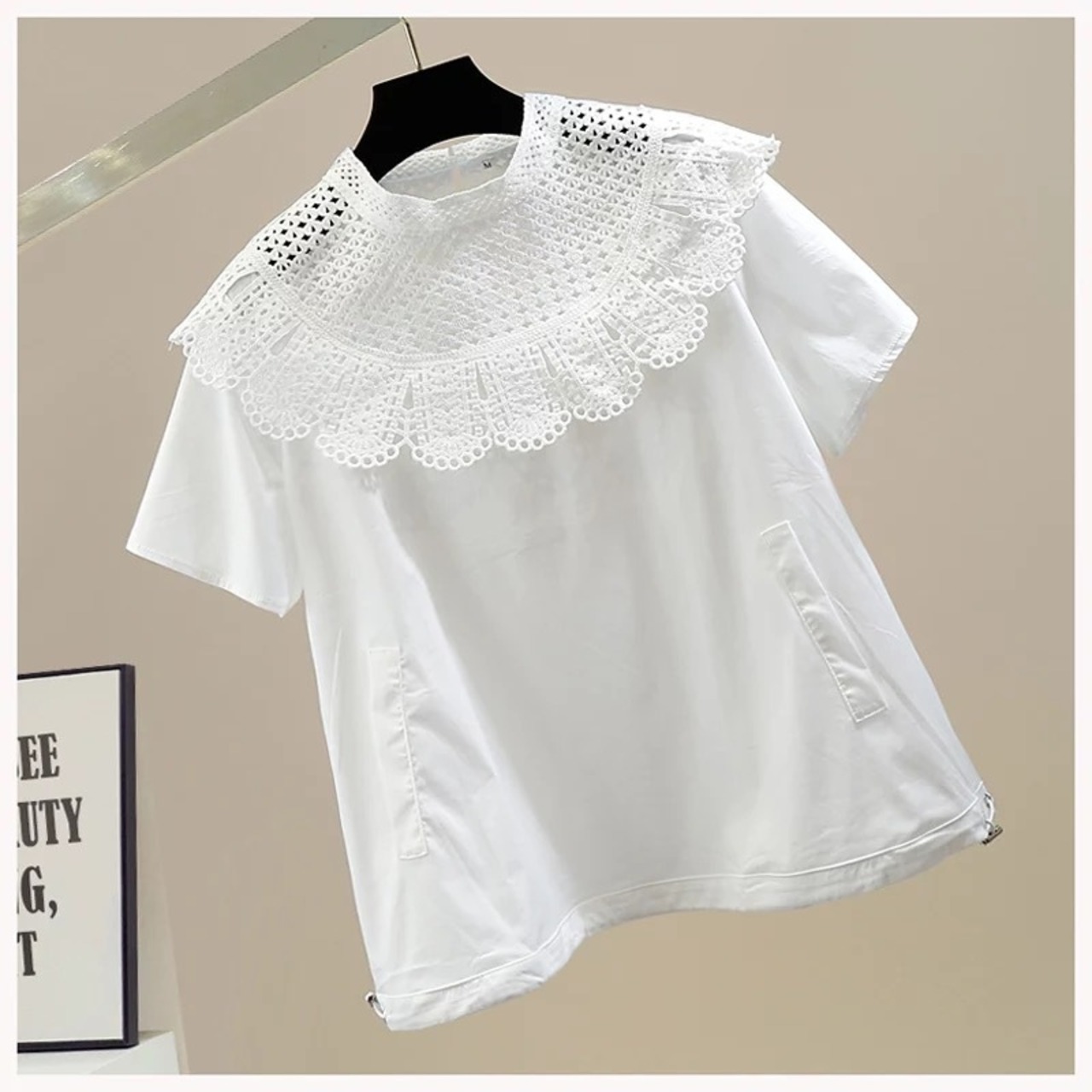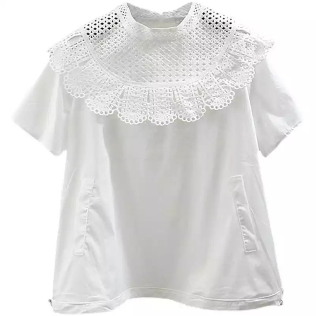 スカラップレースがドッキングデザインになったトップス。