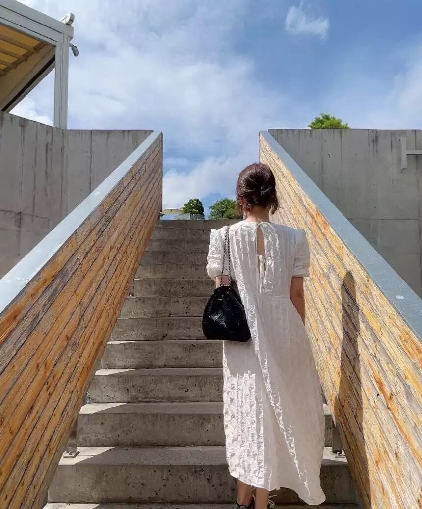 バックリボンがアクセントになり、エレガントにもカジュアルにもスタイリング頂けるワンピースです。