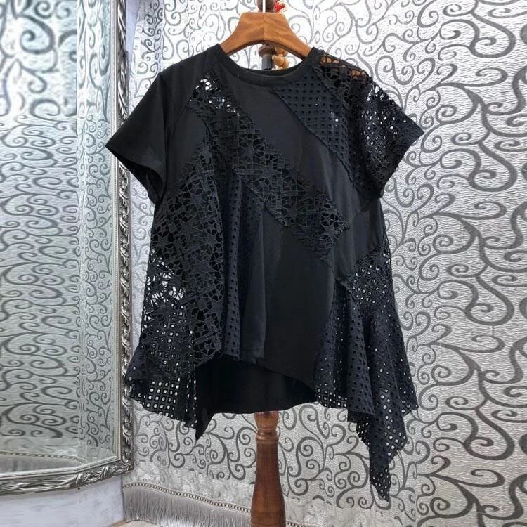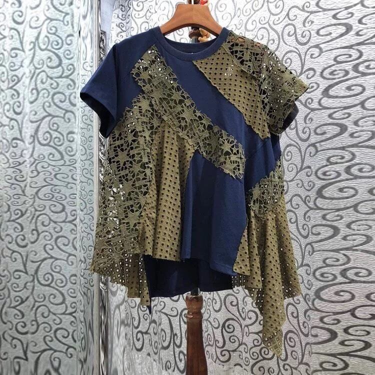 スターレースやスクエアレースのドッキングにアシンメトリーなデザインがオシャレなTシャツ。