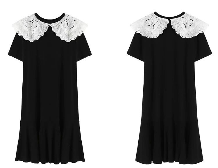 レースカラーがアクセントのワンピース。