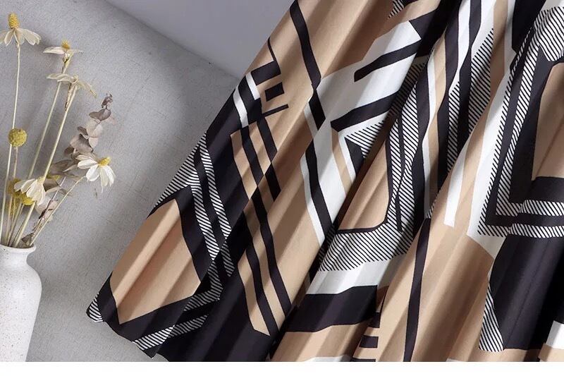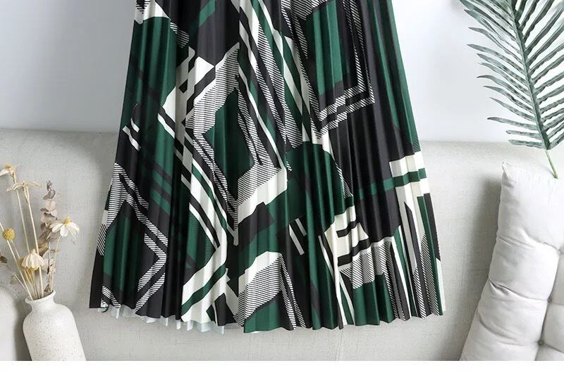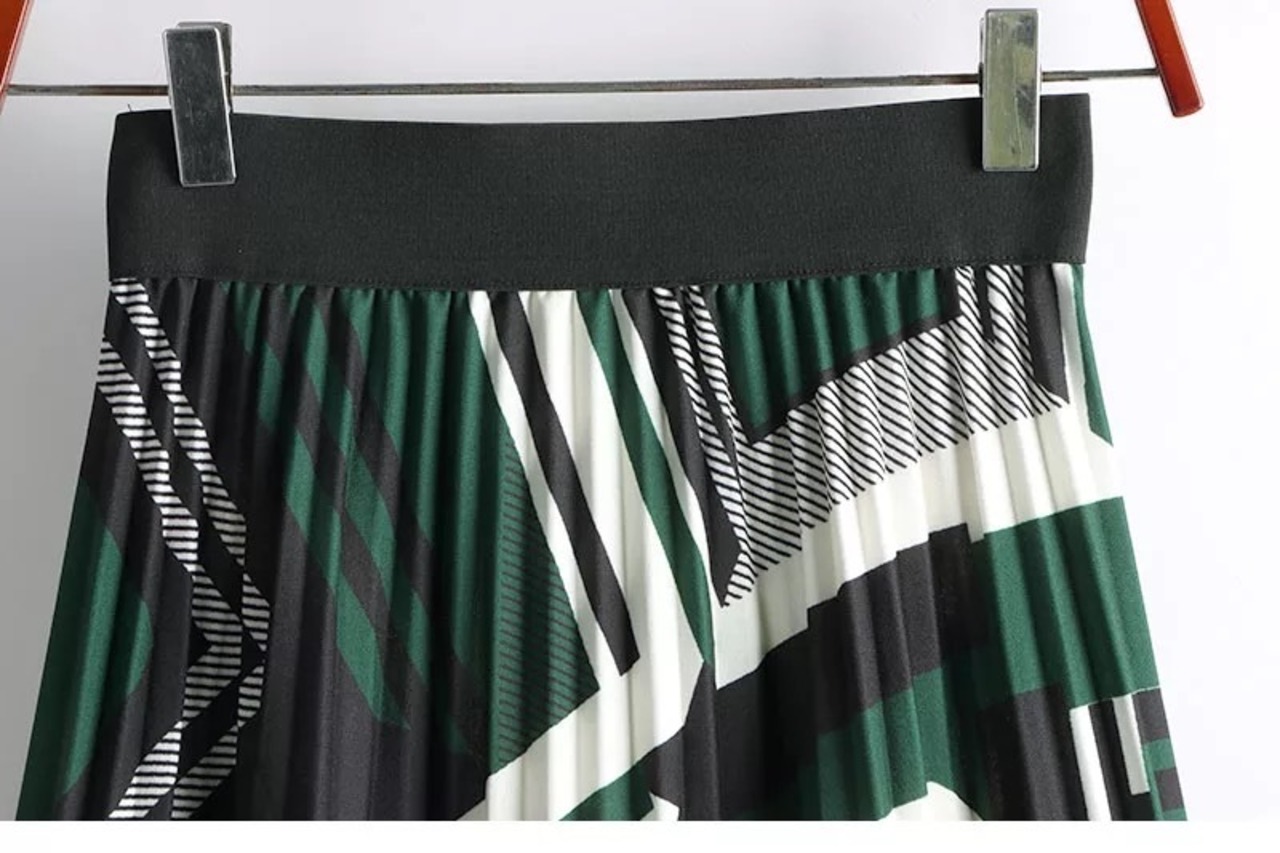 幾何学模様のプリーツスカート。