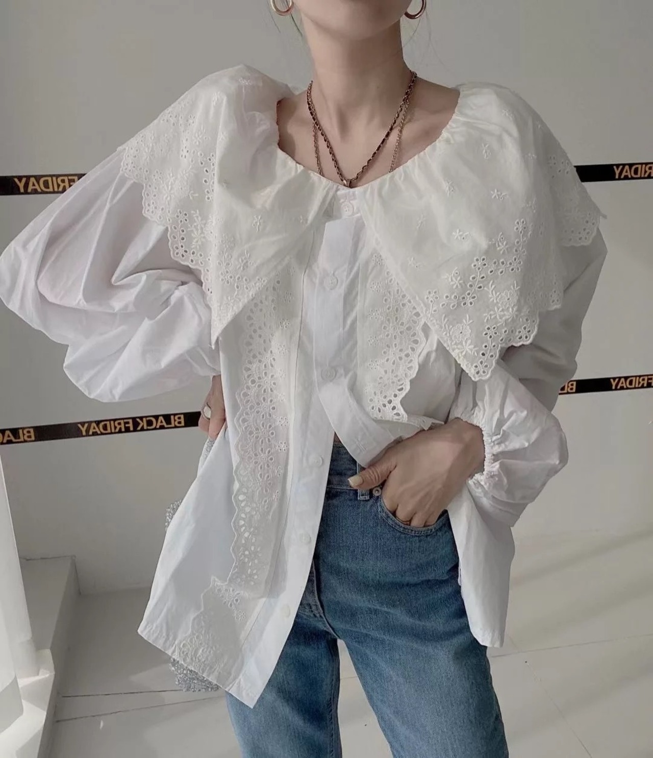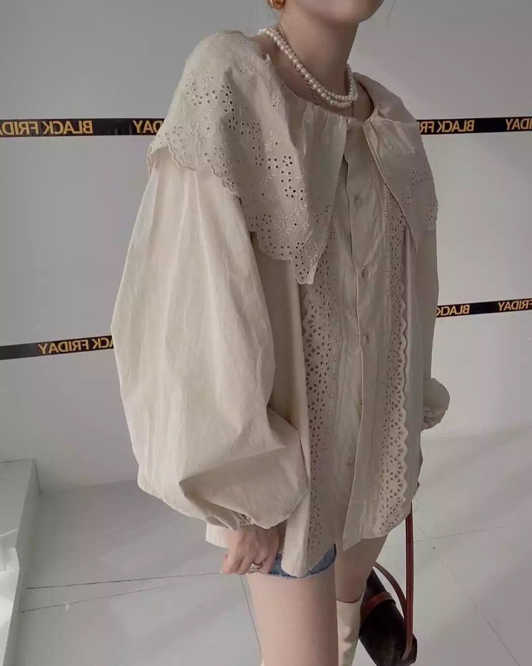 レースビッグカラーブラウス(1ヶ月程でお届け)