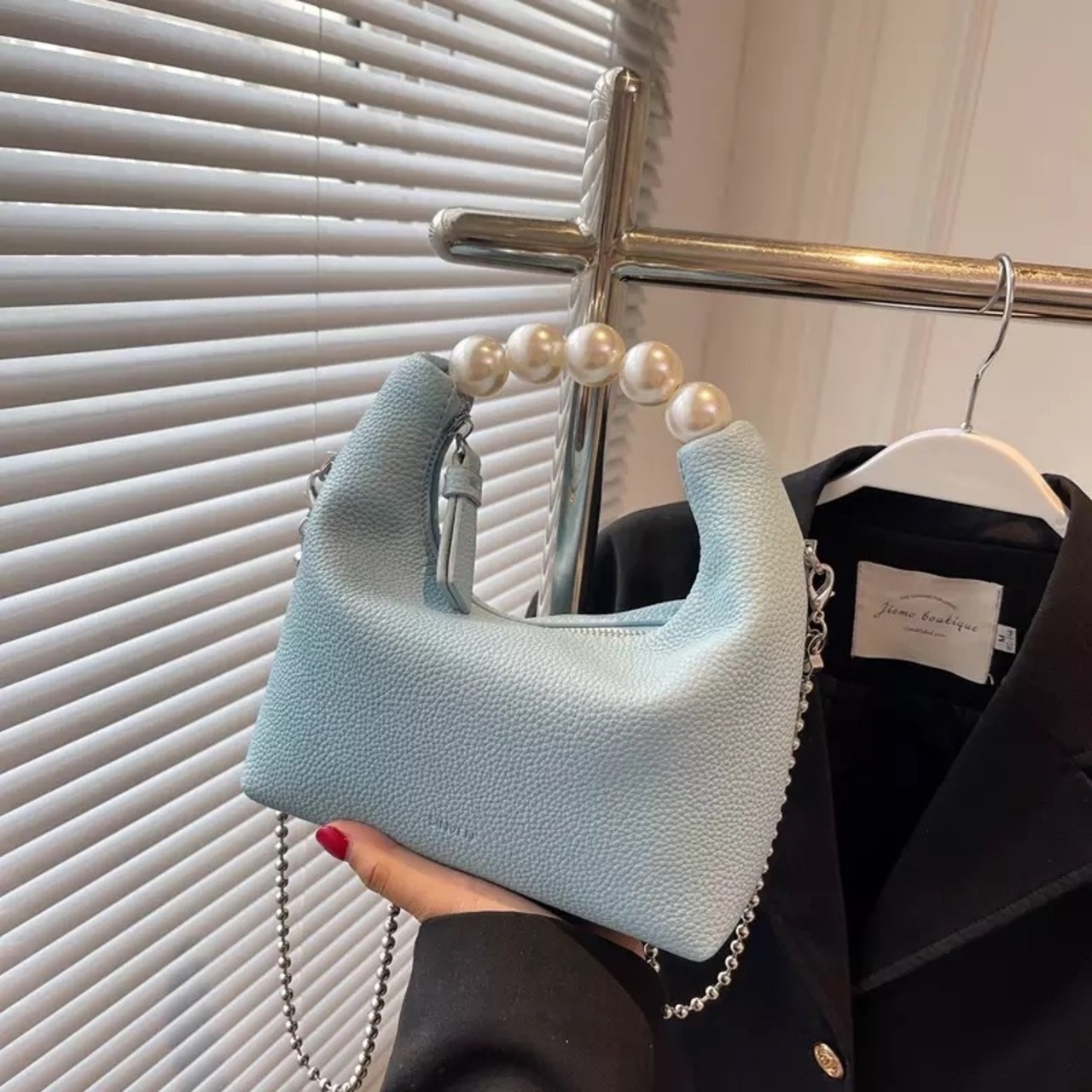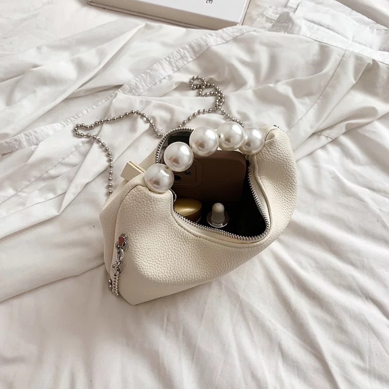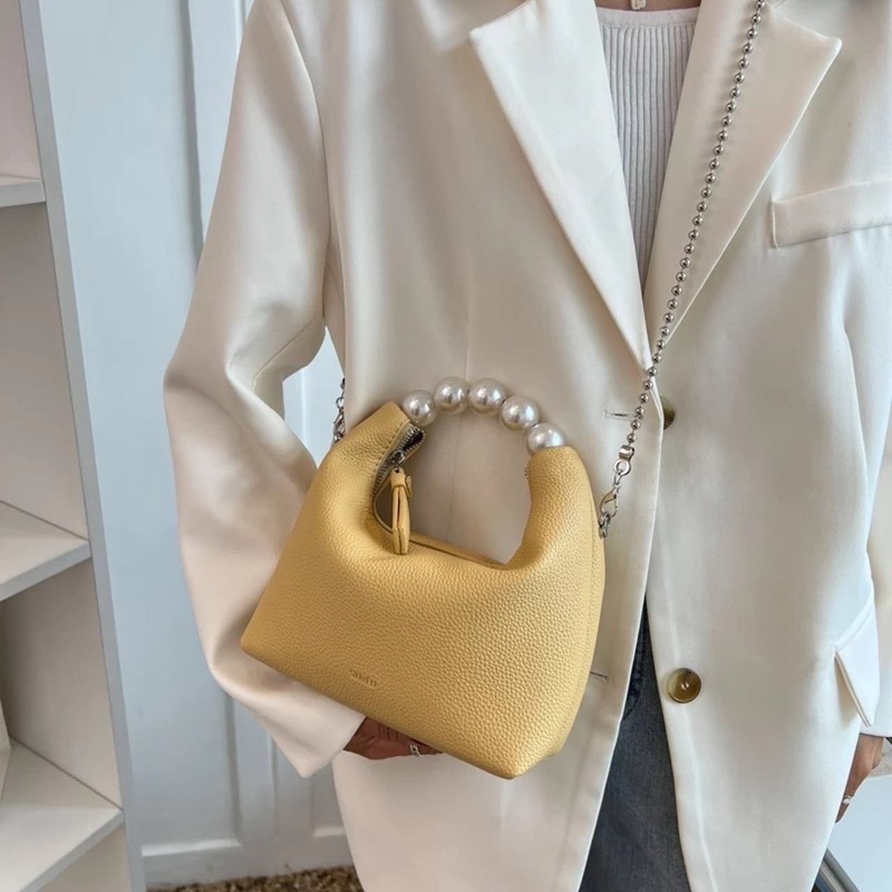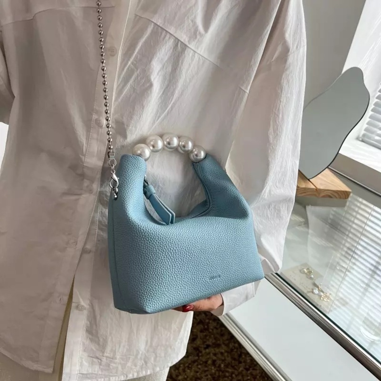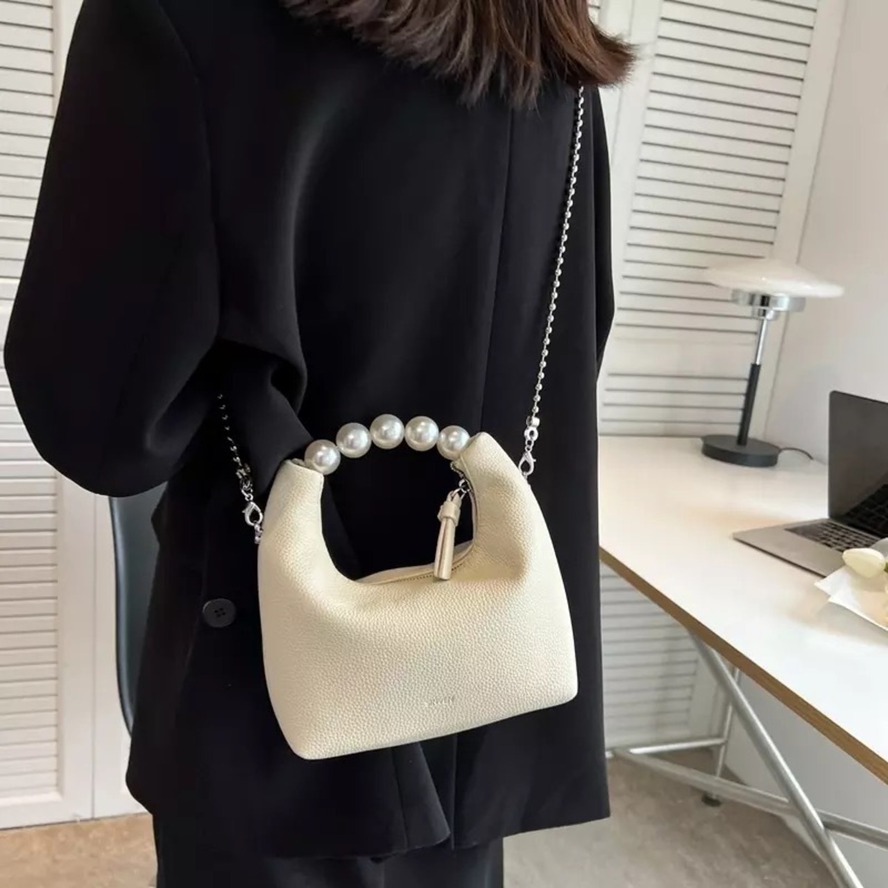 パールハンドルがオシャレな2wayバッグ。
