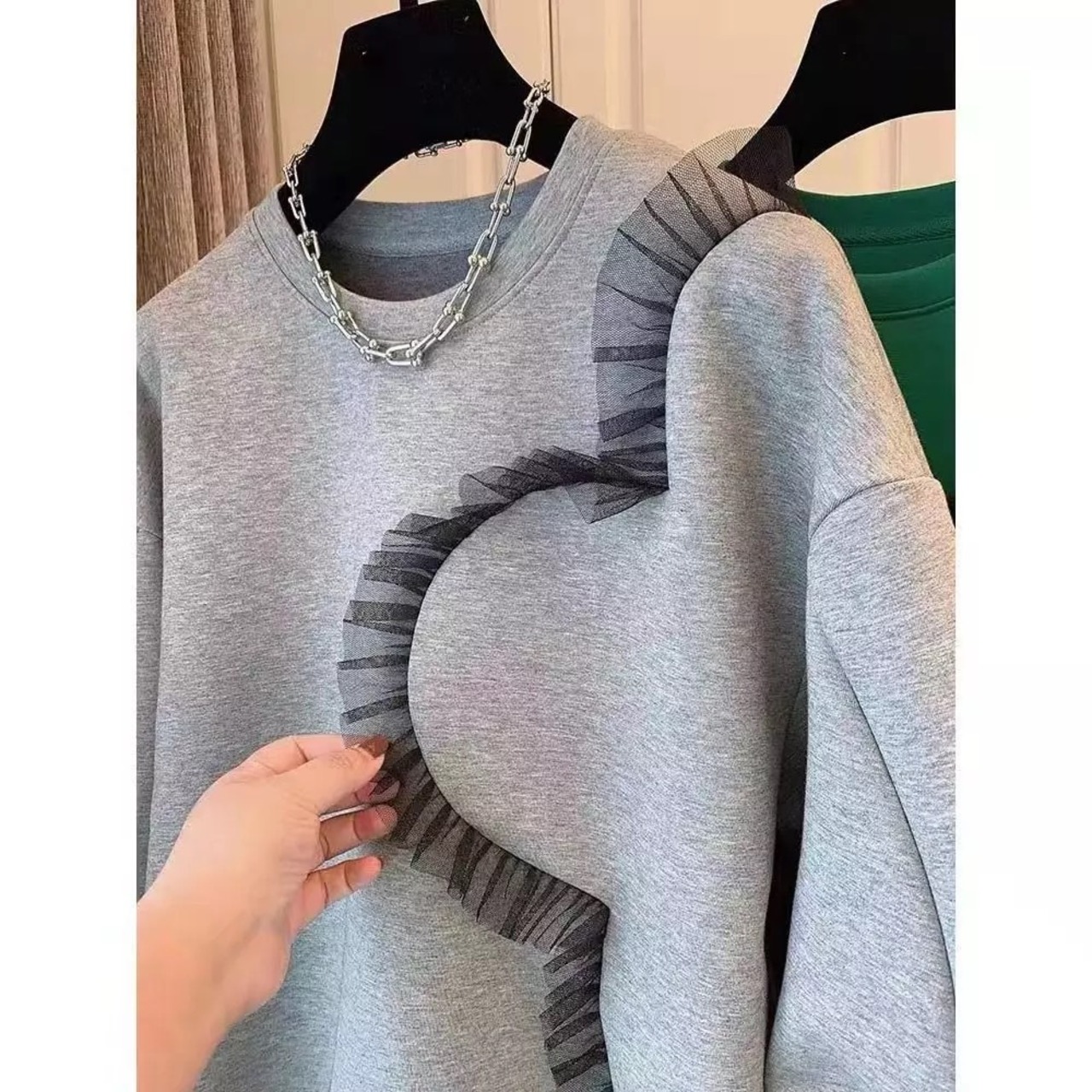 スカラップチュールデザインがアクセントのトップス。