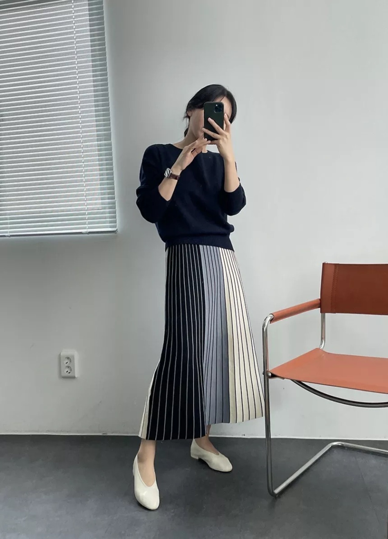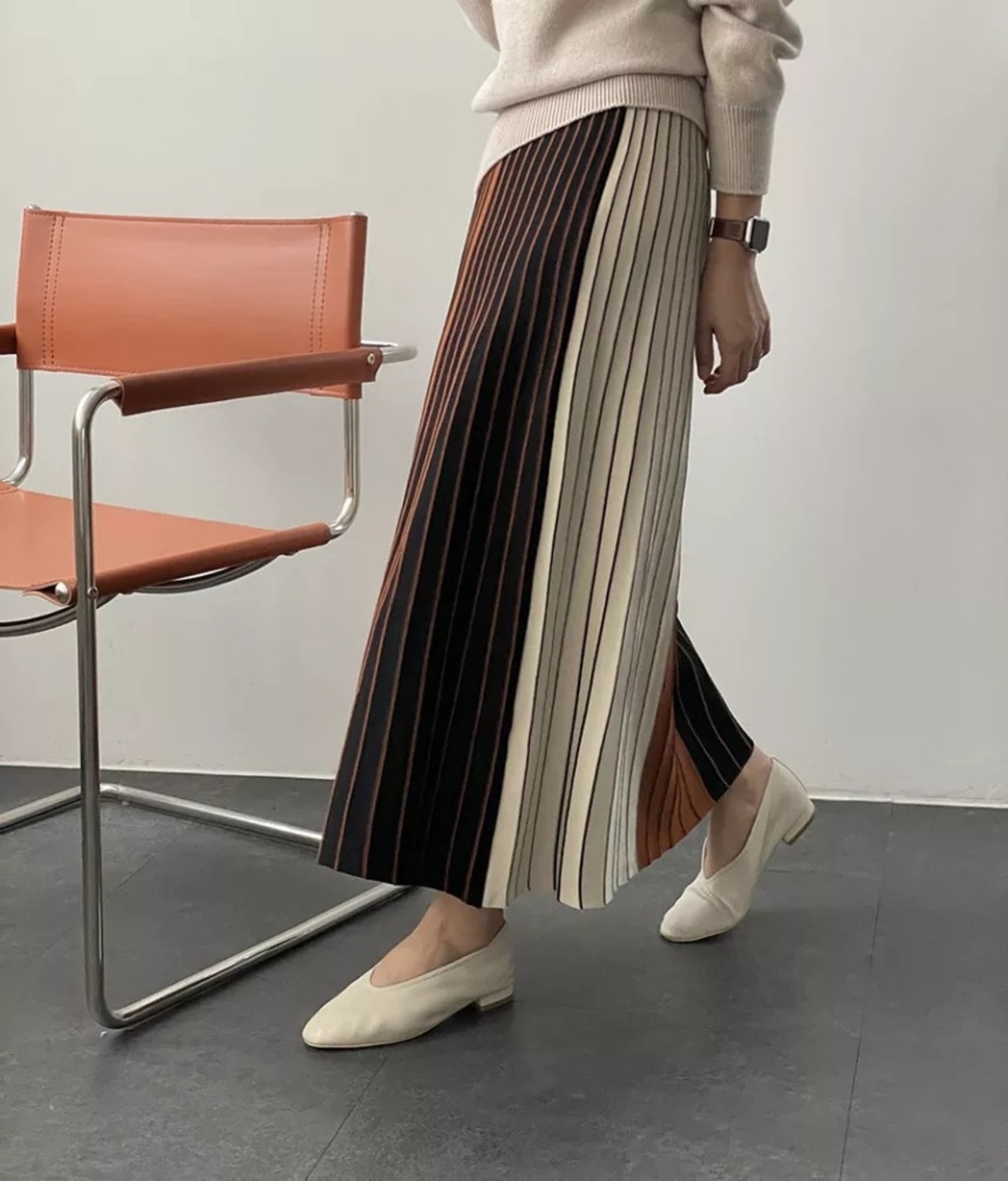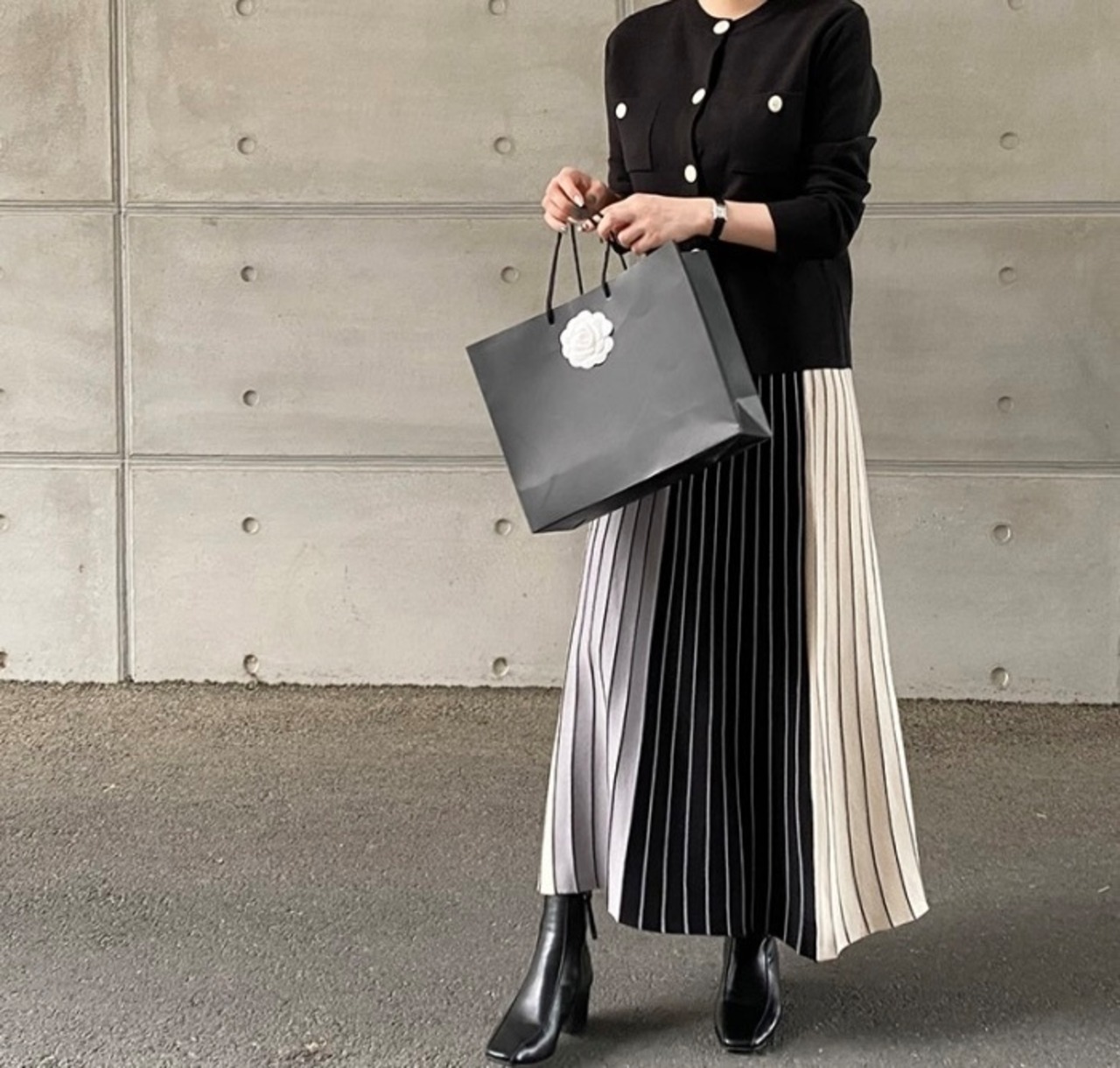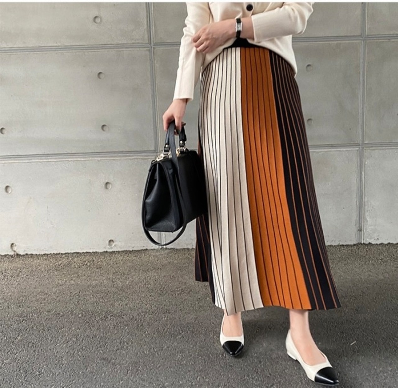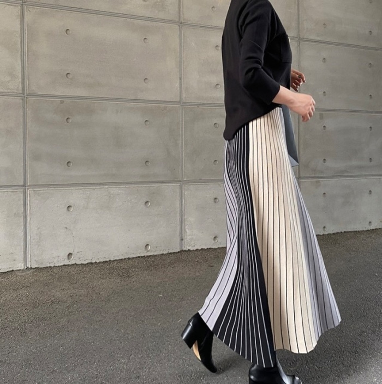 プリーツのように入ったラインにもデザイン性あるスカートです。