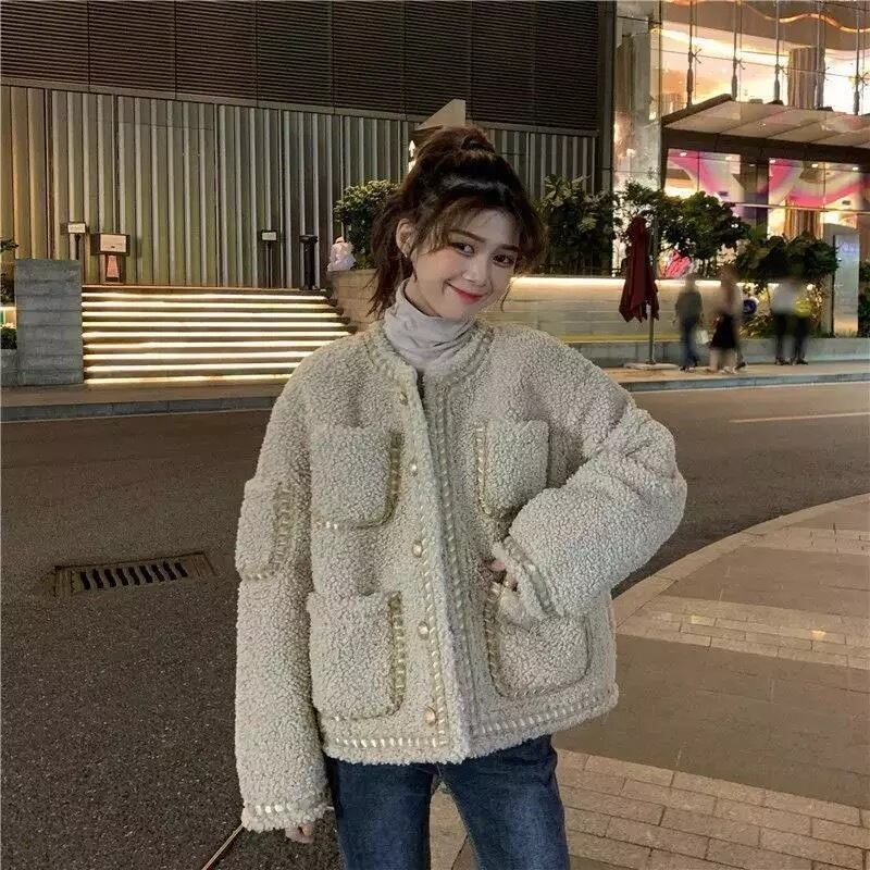 ツイードジャケットのようなエレガントさと、ボアのカジュアルさのミックスが可愛いアウターです。
