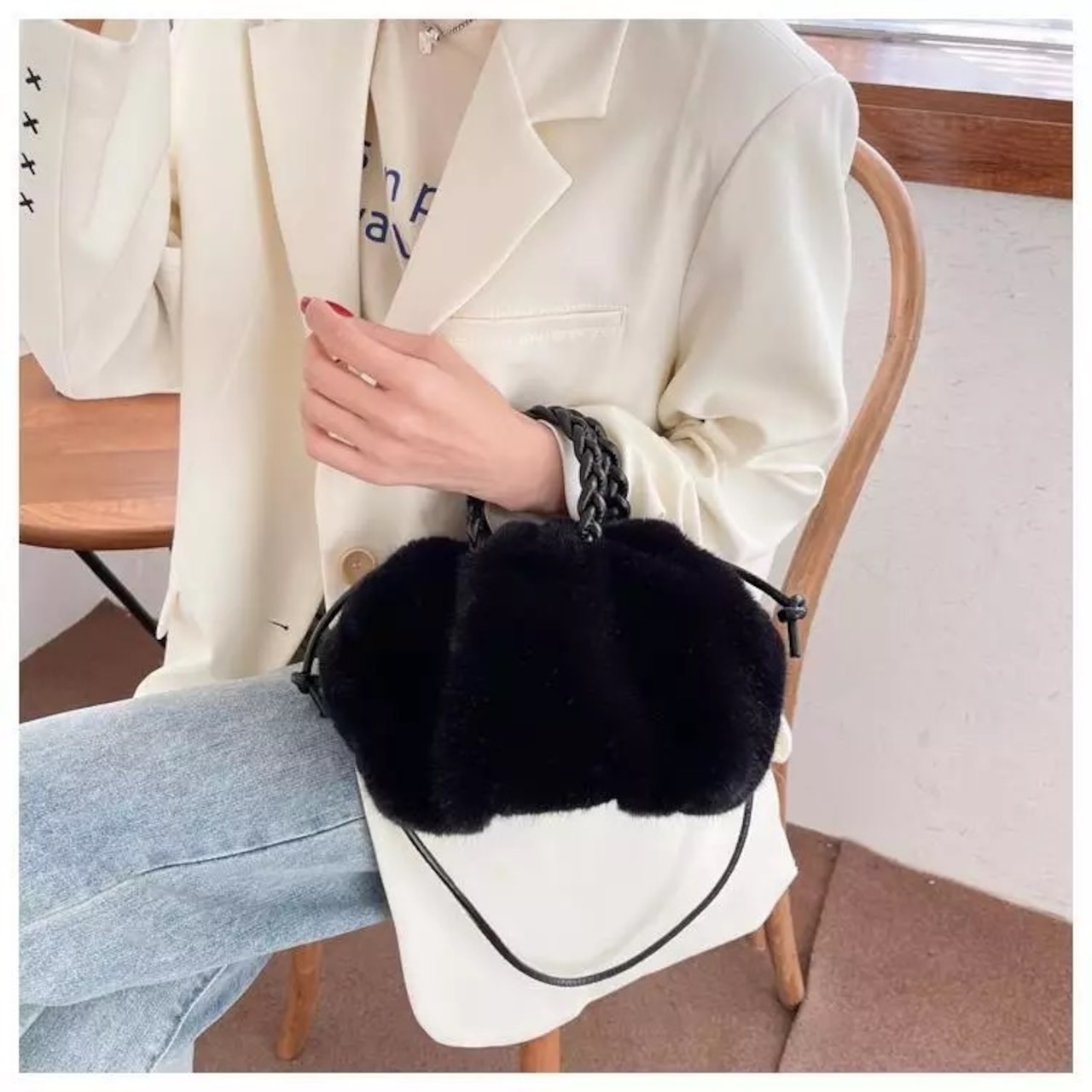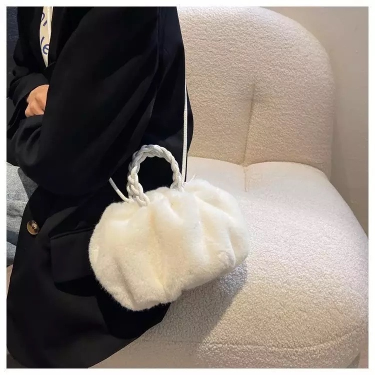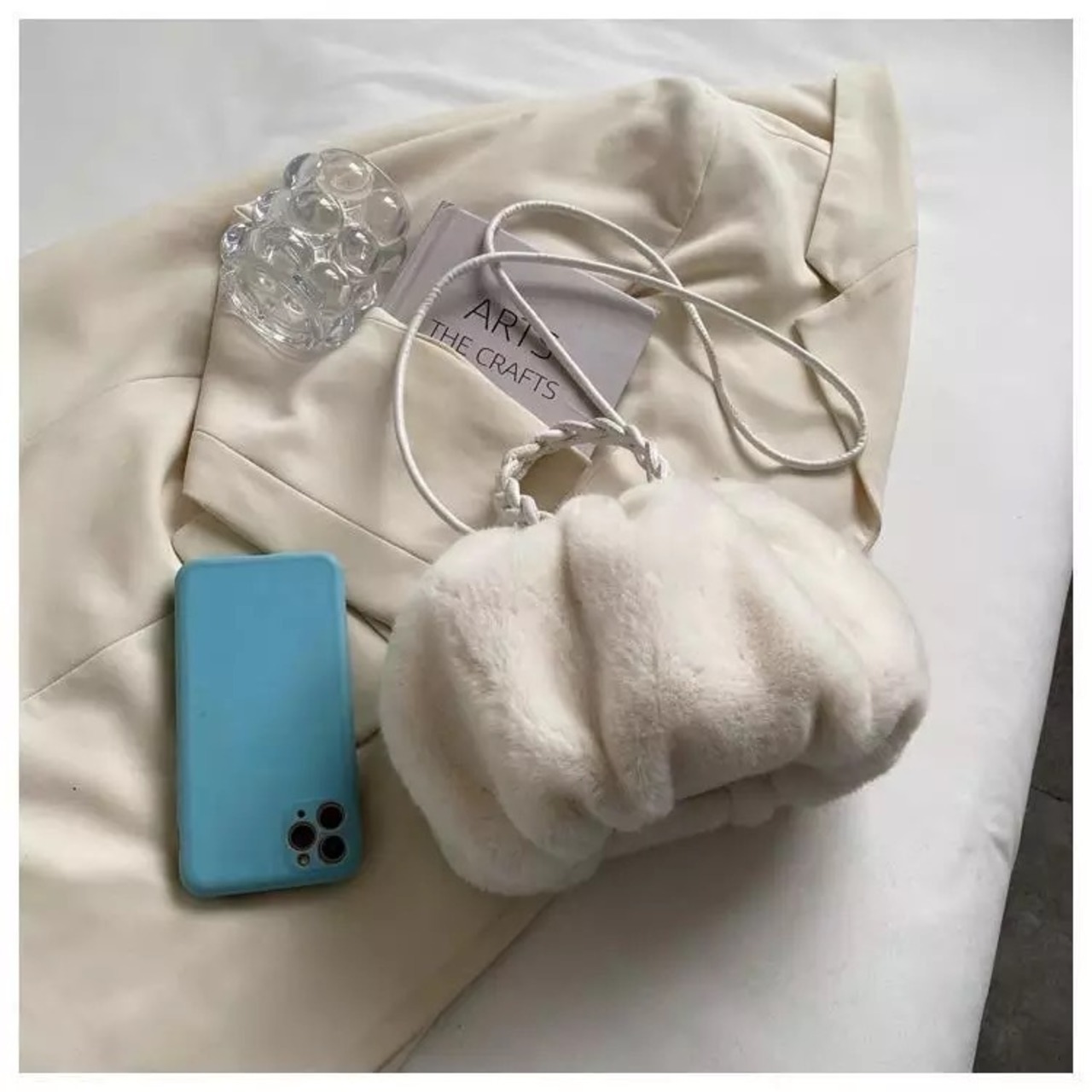 シェルのようにコロンとしたフォルムが可愛いファーバッグ。