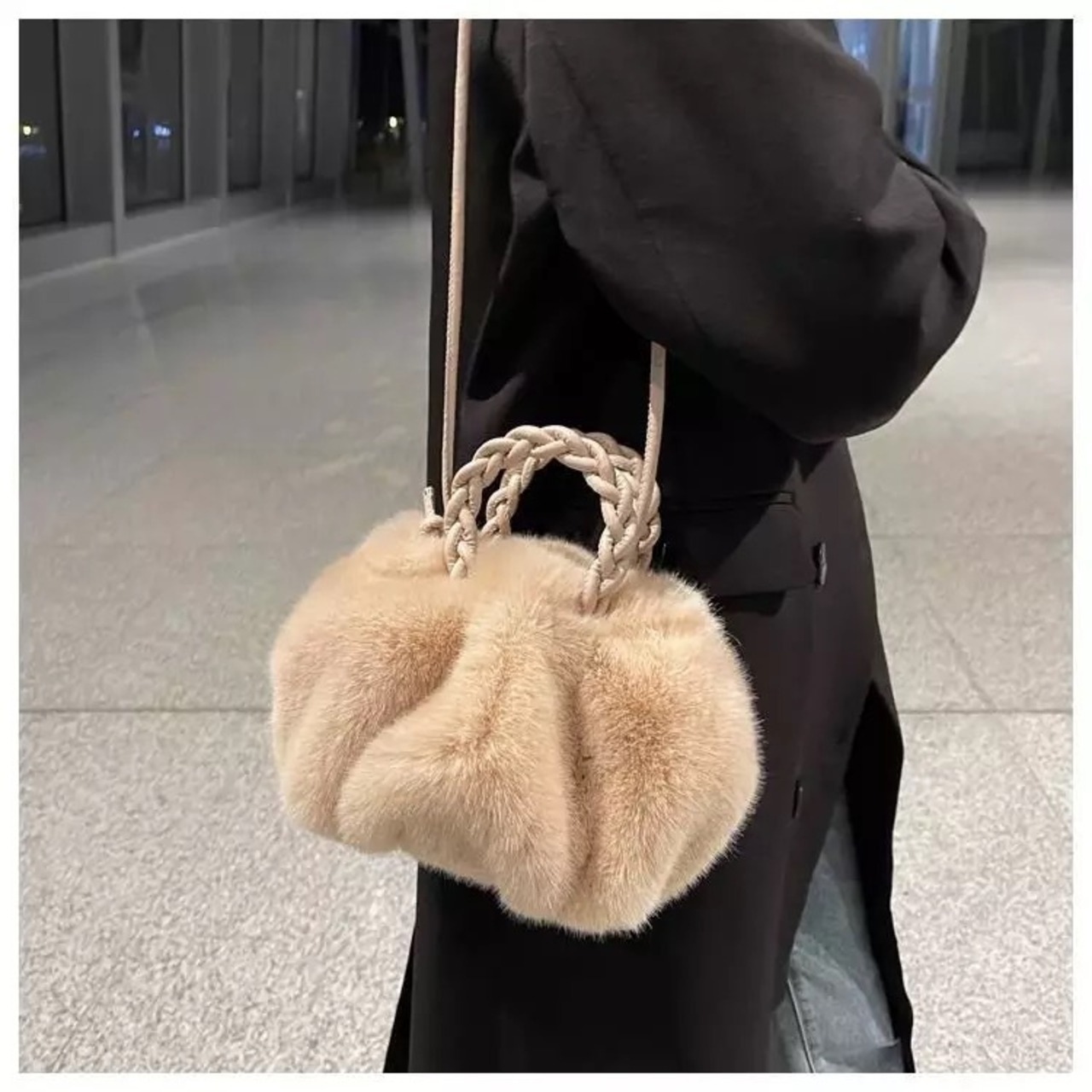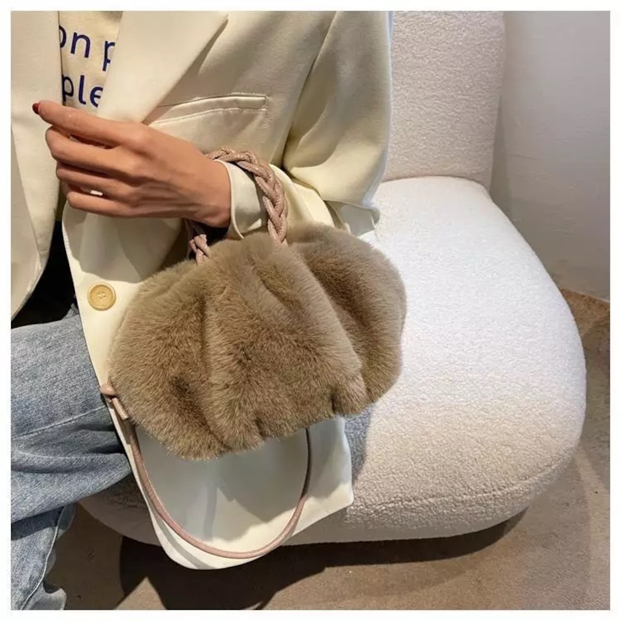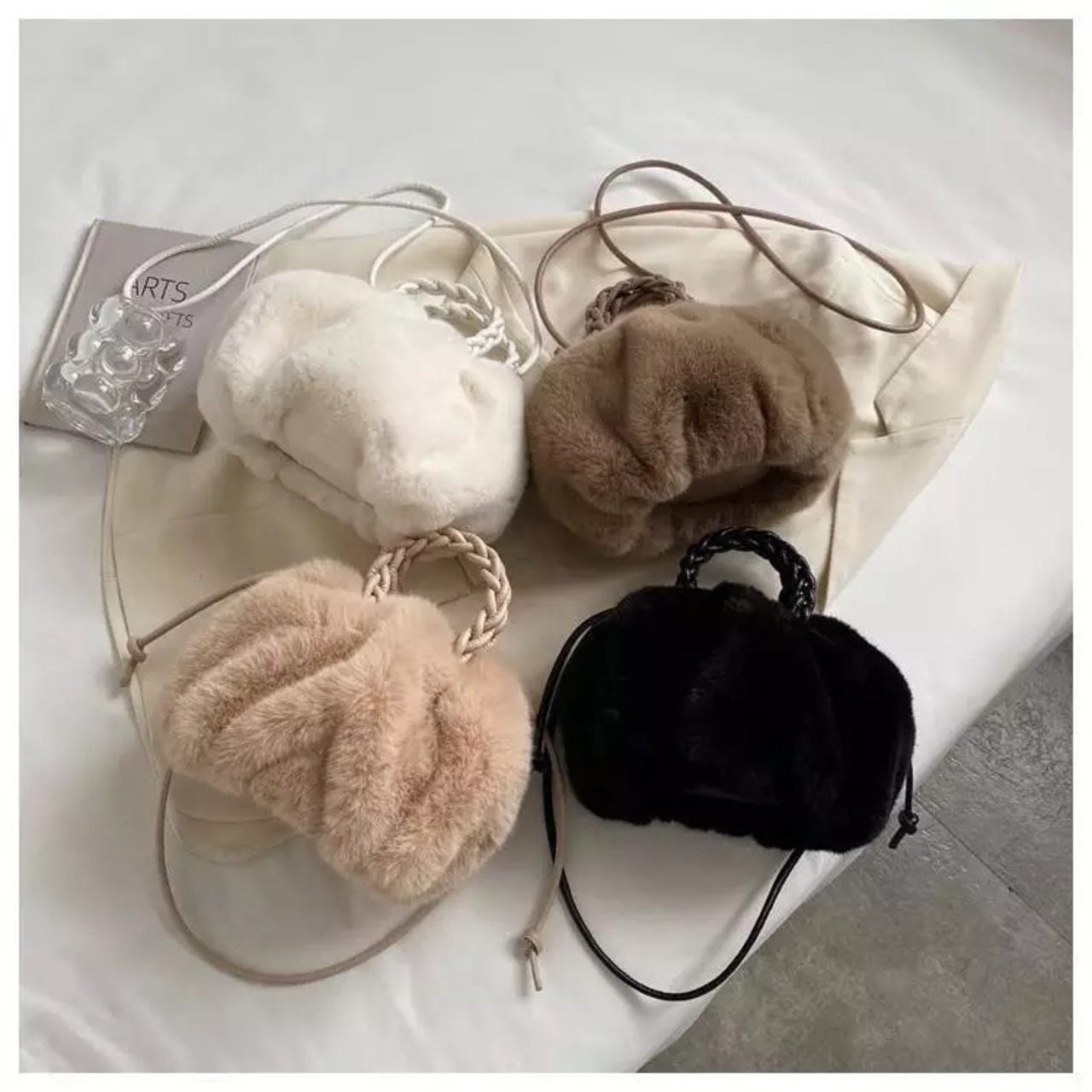 シェルのようにコロンとしたフォルムが可愛いファーバッグ。